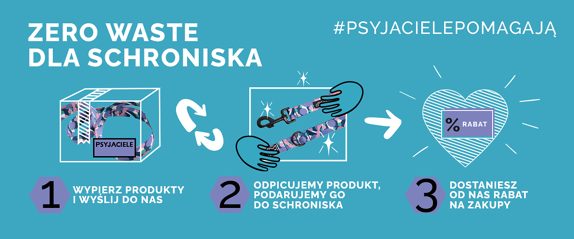 - Don't throw it away! Wash the products so that they are clean and send them to us (to the address: Psyjaciele.com, Smoleńsk 16/1, 31-112 Kraków, or drop them off at a stationary store - 1 Focha Street, Kraków) with a #psyjacielepomagaja note and your email address.