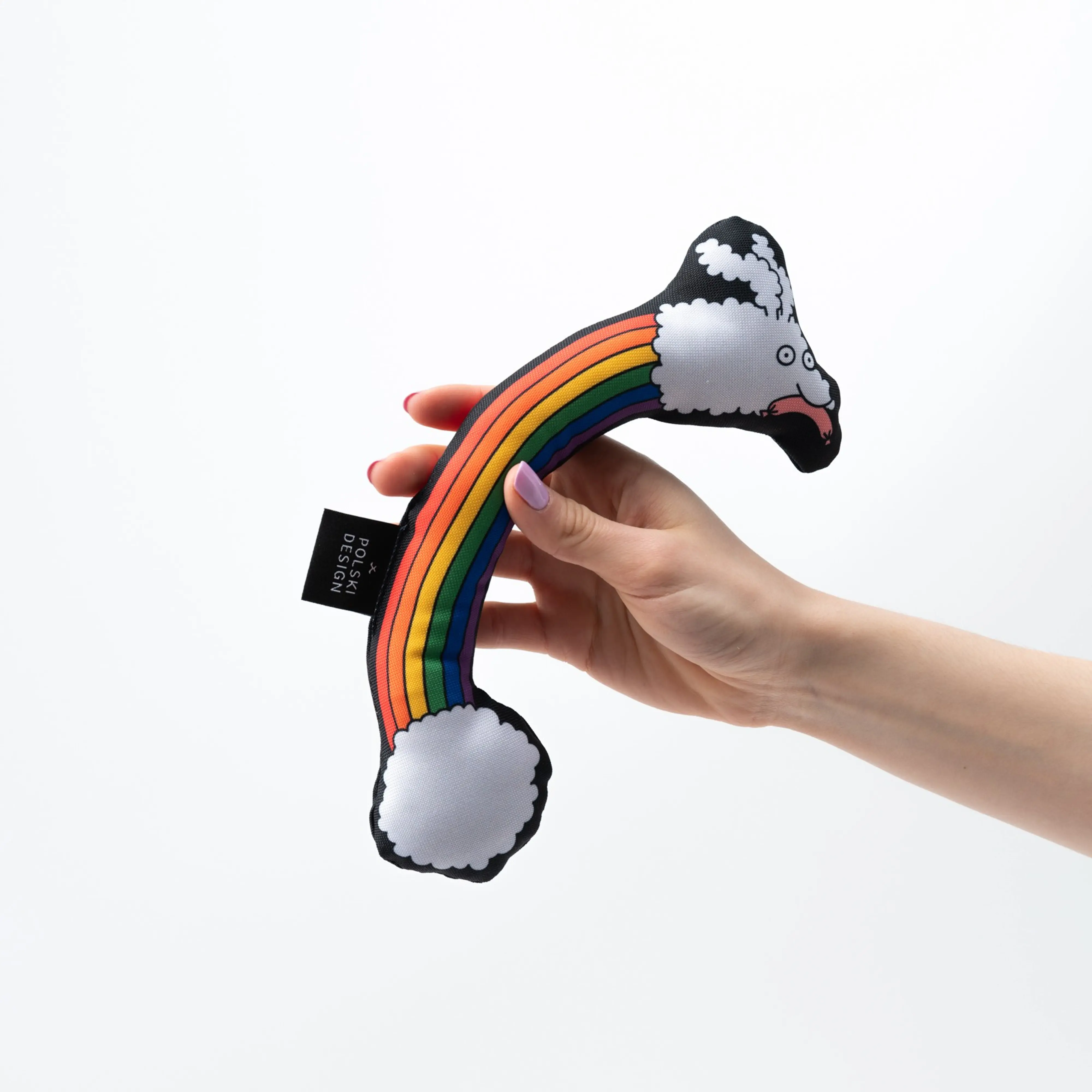 Our rainbow-shaped toy will please every pooch. The toy is sewn from strong, waterproof material; inside it was filled with soft ovate. An interesting pattern designed by the wonderful Adela Madej will make every pet happy with such a gift.