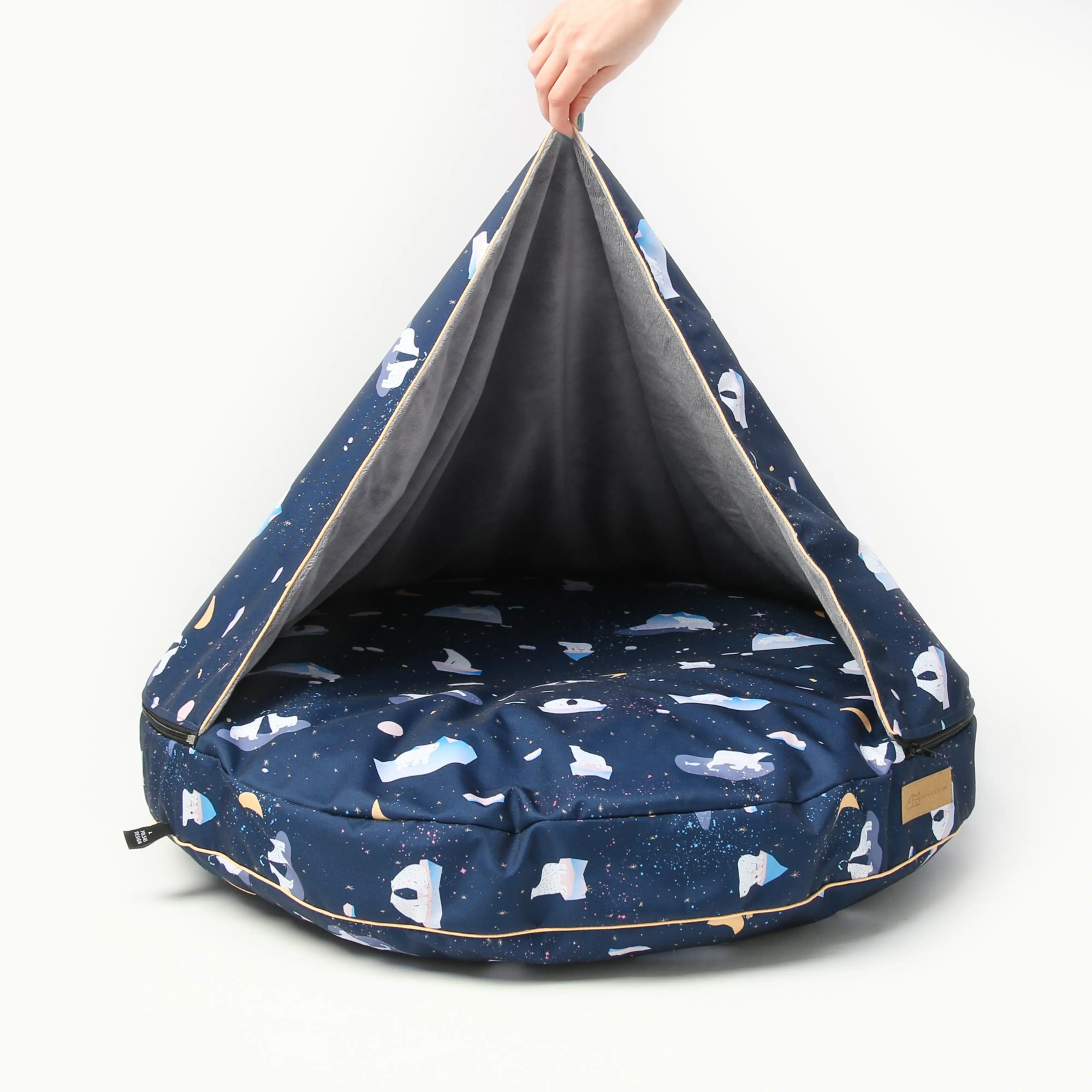 Beautiful, super comfortable round pillow with hood for your dog ''Polar pattern''