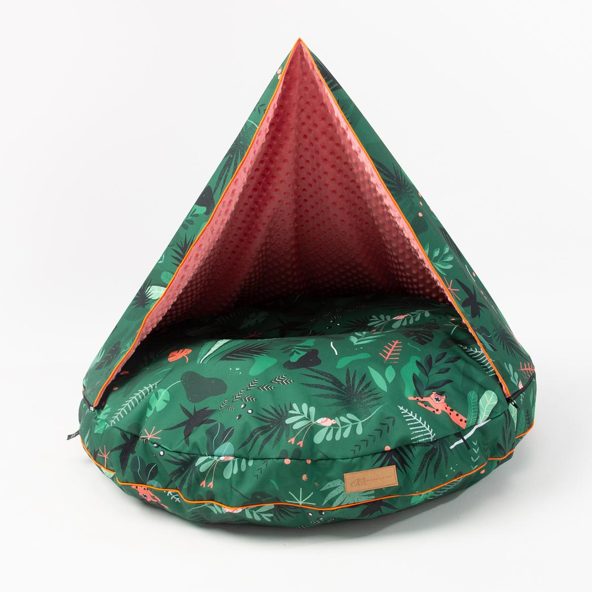 WYPRZEDAŻ Legowisko okrągła poducha z kapturem dla psa lub kota "Welcome to the jungle"