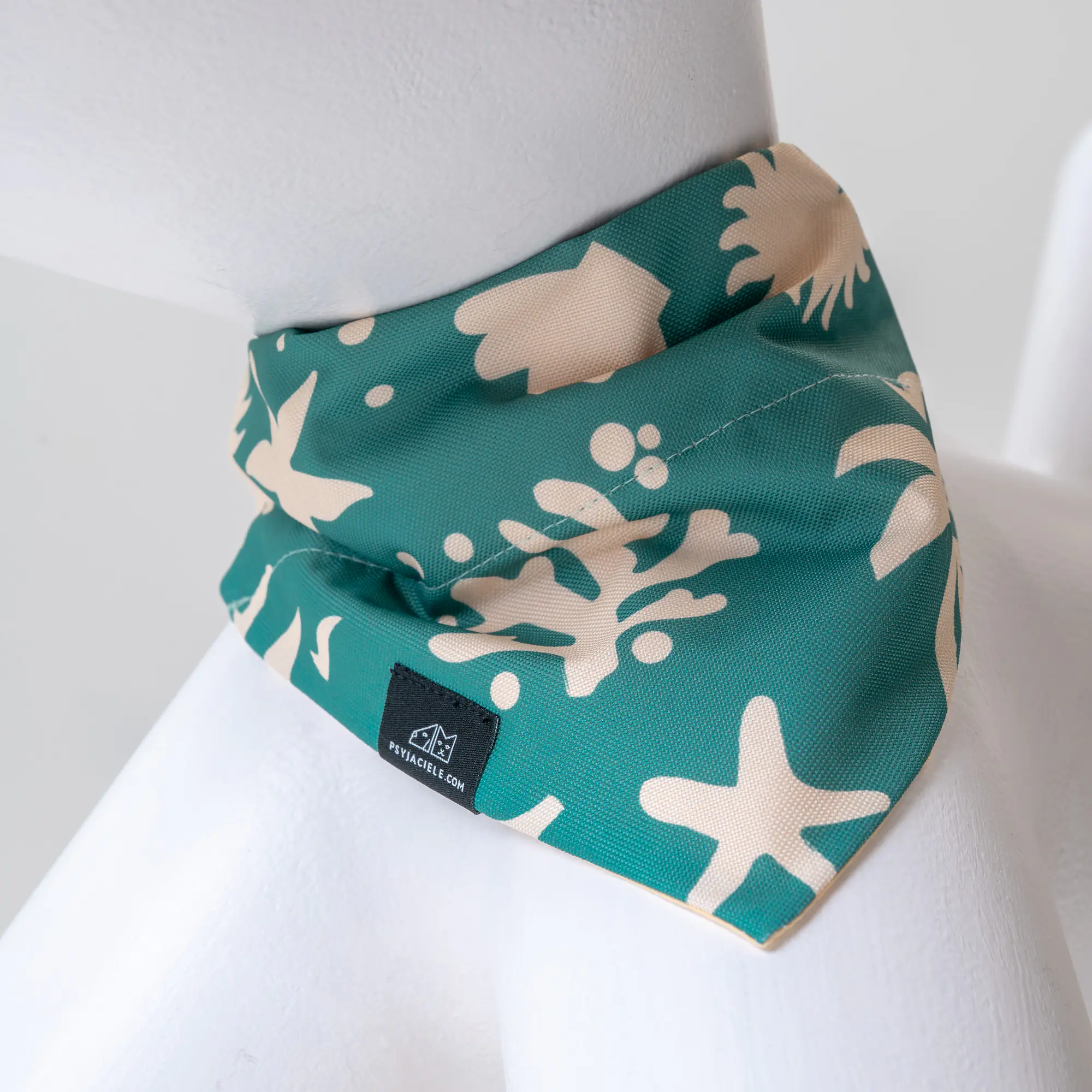 To remove minor dirt, simply wipe with a damp sponge dipped in warm water. For heavily soiled dirt, the bandana can be washed by hand at 30 degrees. The product should not be chlorinated, starch, ironed, bleach, mechanically dried or dry-cleaned. After washing, remember to hang it so that the bandana can dry thoroughly.