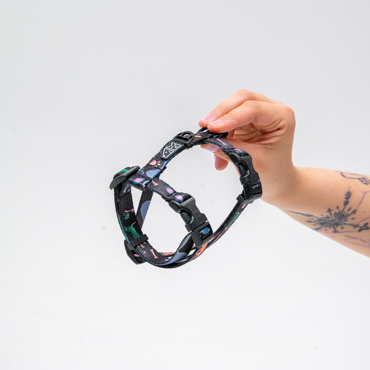 Our harness has been designed with your cat's safety and comfort in mind. It consists of two adjustable straps – one for the neck and one for the chest – connected by a back strap, which ensures a stable fit without restricting movement. Thanks to the wide range of adjustments, they fit most cats – from kittens to adults.