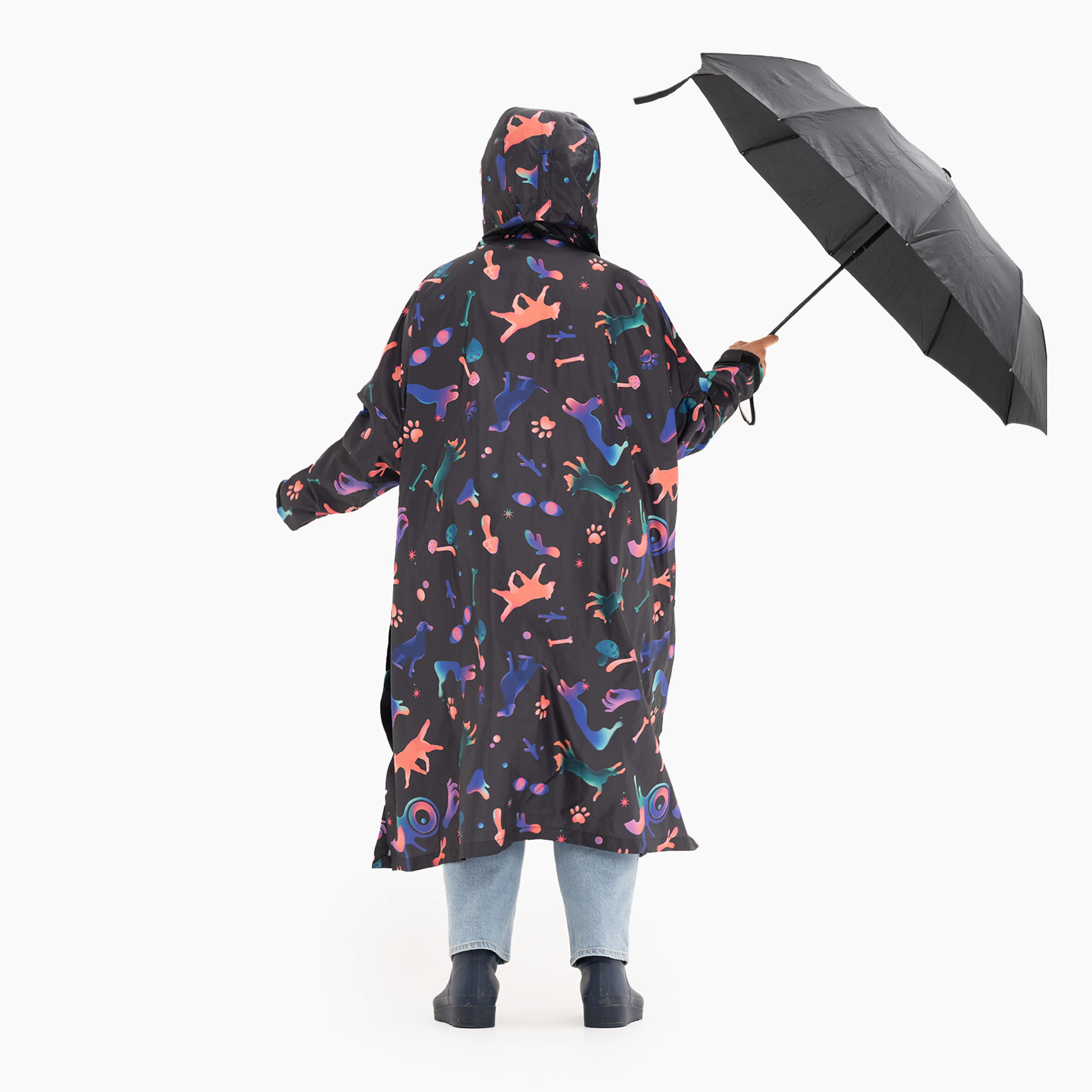 A wonderful mackintosh created and manufactured in Poland from the highest quality waterproof fabric with pattern. It is one size which looks great on both boys and girls. The raincoat can be stowed in the small pocket at the front turning it into a pouch and clipped to your backpack or bag with the attached carabiner.
