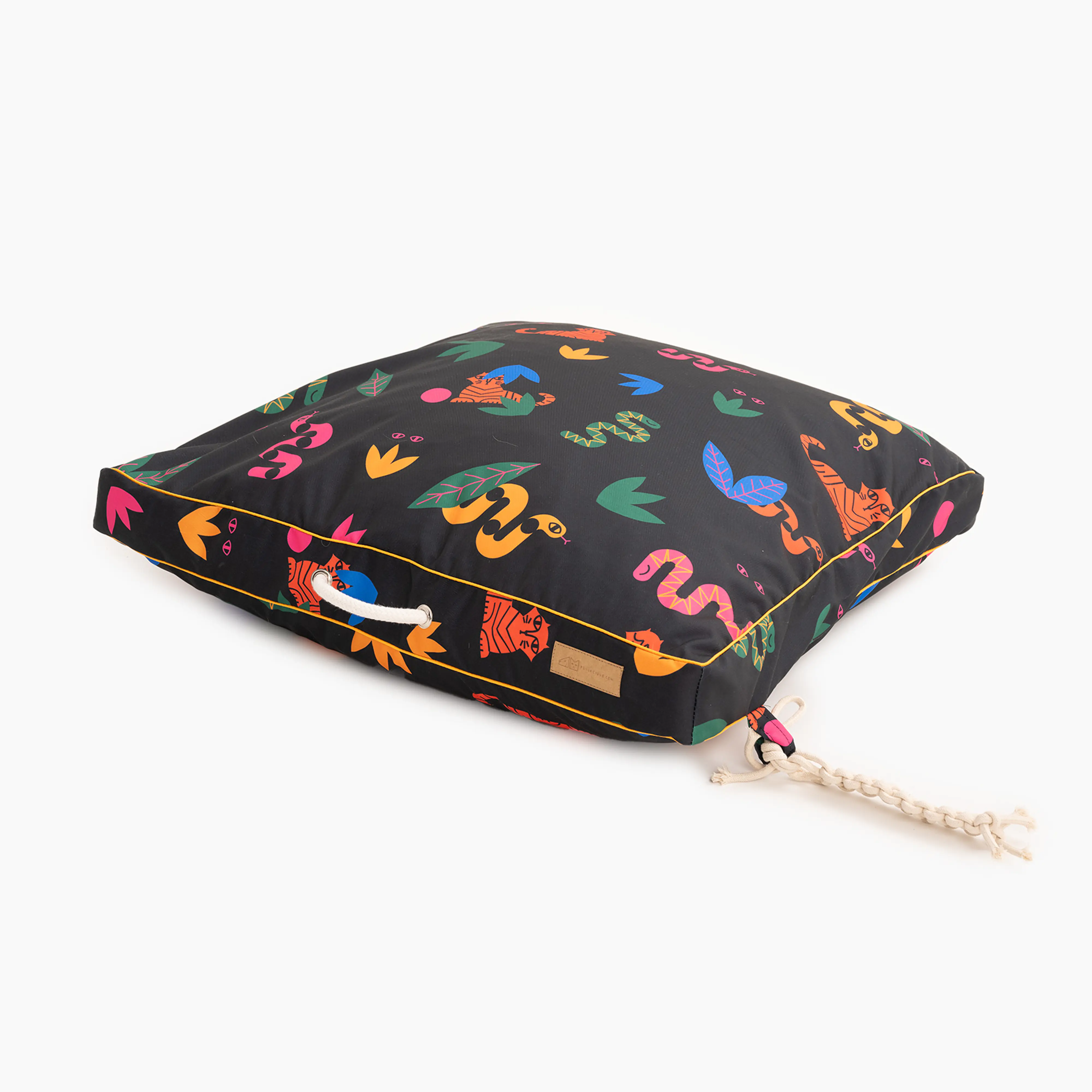 The pillow was made in Poland, from the highest quality Polish materials ensuring long and comfortable use. The shape of the bed ensures great comfort for the pet - the profiled inner cushion ensures the highest comfort while resting, playing or eating chews. The handle made of thick rope and an attached string toy for chewing add to its charm.