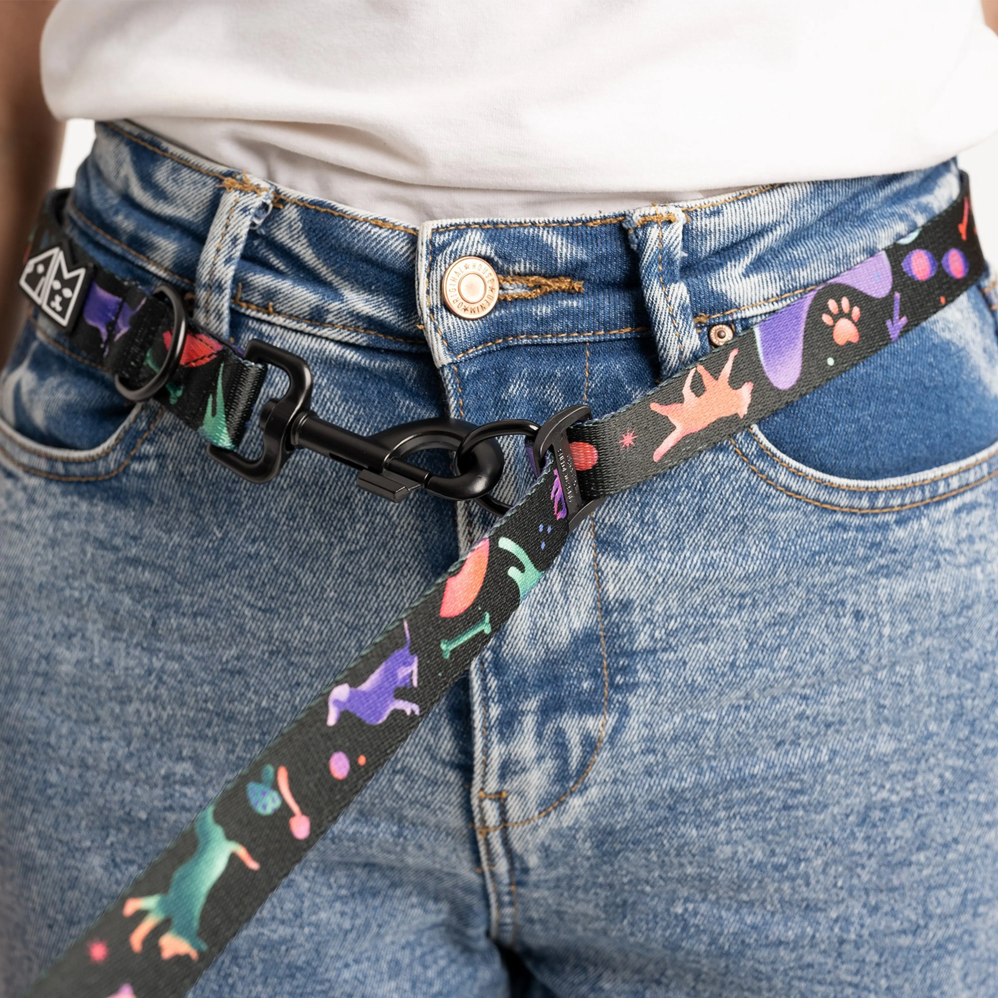 Key product features: Colorful, double-sided, very durable tape 25mm wide; Strong, weatherproof Duraflex fittings; Two types of snap hooks adapted to the size of the dog; Handmade in Poland; Two snap hooks for length adjustment; A unique design available only on psyjaciele.com