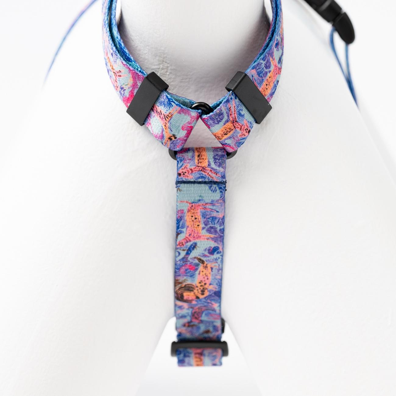 Key product features: Colorful, double-sided, very durable tape 25mm wide; Strong, weatherproof fittings and Duraflex buckle; Special address or number attachment; Handmade in Poland; A design that protects the dog's spine and prevents escape; Adjustable in up to 4 places; A unique design available only on Psyjaciele.com
