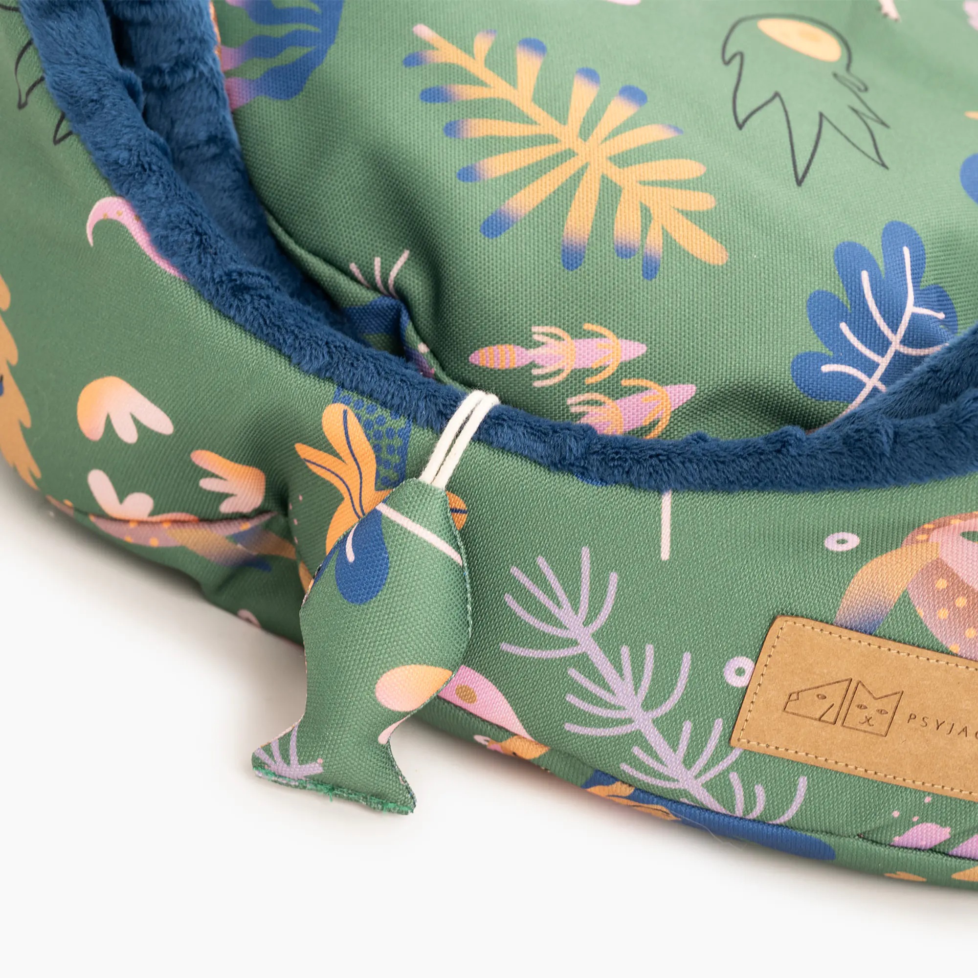 Każde legowisko powstaje z materiału ze wzorem, więc poszczególne egzemplarze mogą się różnić zarówno od siebie jak i od zdjęcia w związku z użyciem innego fragmentu tkaniny.