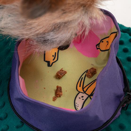 Podróżna miska dla psa to idealne rozwiązanie dla aktywnych właścicieli, którzy lubią mieć wszystko pod ręką, nawet w trakcie spacerów czy krótkich wyjazdów. Dzięki nowoczesnemu designowi i materiałowi z charakterystycznymi wzorami, miska łączy w sobie funkcjonalność i styl.