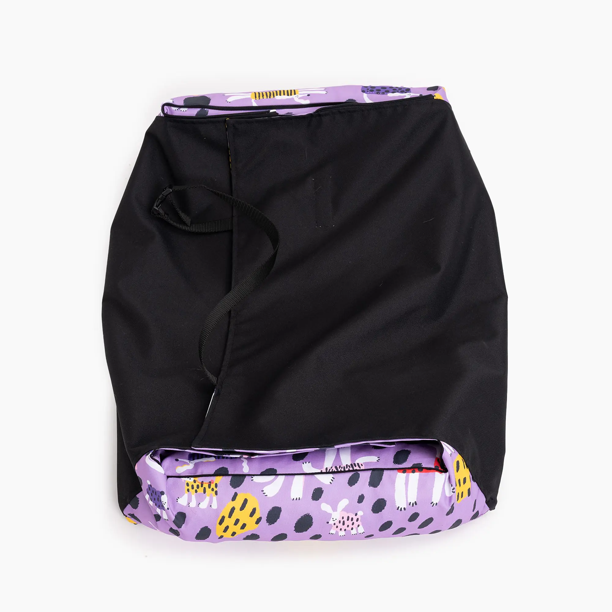 Chcąc usunąć sierść wystarczy odkurzyć fotelik, wytrzepać lub przejechać rolką do ubrań. W celu usunięcia drobnych zabrudzeń wystarczy przetrzeć wilgotną gąbką zamoczoną w ciepłej wodzie. Przy większych zabrudzeniach pokrowiec można ściągnąć usuwając z wnętrza całe wypełnienie przy użyciu zamków błyskawicznych i uprać ręcznie lub w pralce w temperaturze 30'. Należy użyć delikatnego trybu prania z wirowaniem max 700 obrotów. Produktu nie należy chlorować, krochmalić, prasować, używać wybielaczy, suszyć mechanicznie czy prać chemicznie. Po praniu warto pamiętać o rozwieszeniu aby pokrowiec mógł dokładnie wyschnąć.
