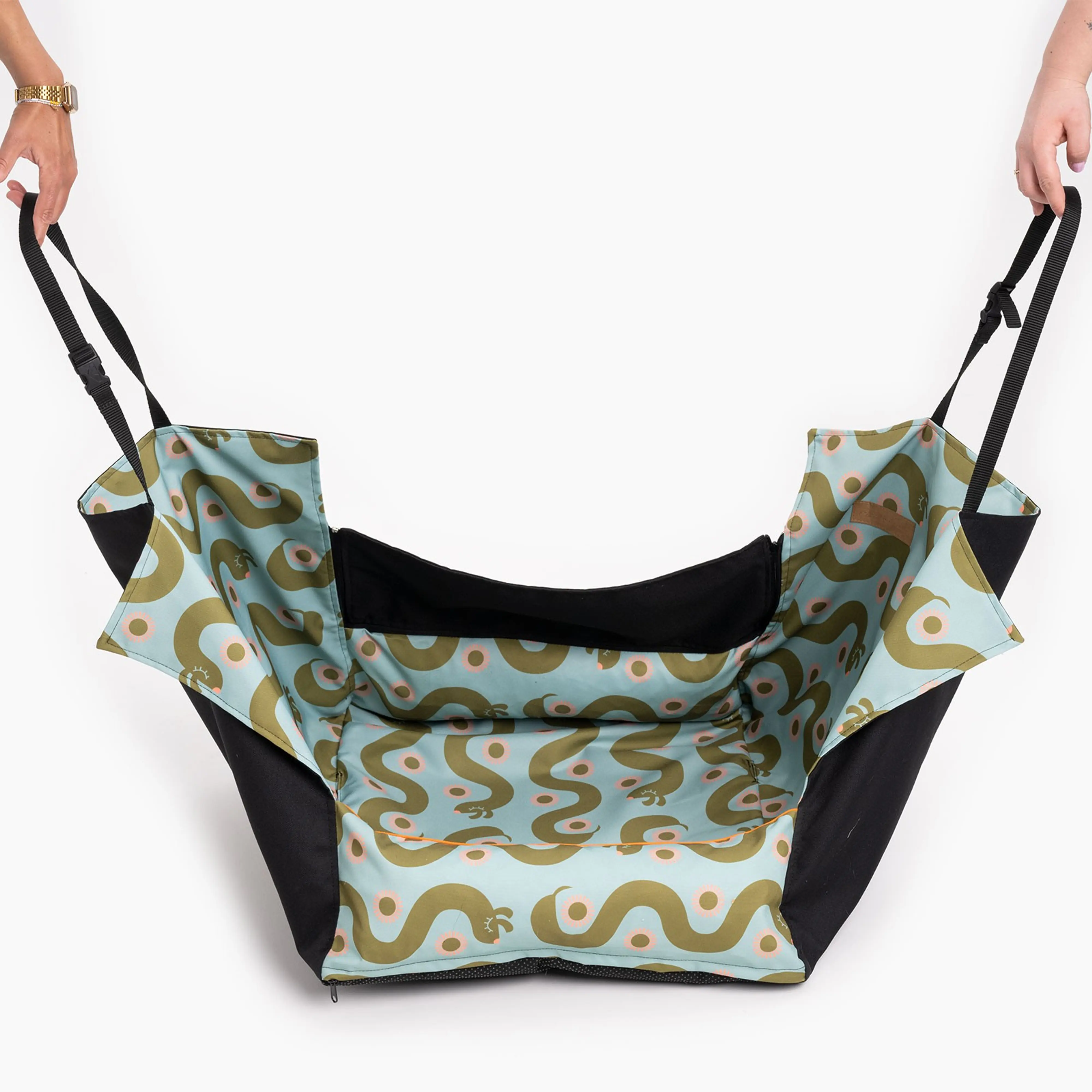 Na tylnej kanapie paski fotelika zaczepiamy o przedni i tylny zagłówek. Regulacja sprawia, że fotelik pasuje do wszystkich standardowych samochodów osobowych. Na przedniej kanapie zawieszamy jeden pasek, z drugiej strony zwierzak zabezpieczony jest poduchą, dokładnie taką jak w naszych kanapach (UWAGA! Pamiętaj, by przy przewożeniu psa na przedniej kanapie wyłączyć poduszkę powietrzną). Fotelik został wyposażony w odpinaną część, która przydaje się zwłaszcza przy przewożeniu psa na przednim siedzeniu.