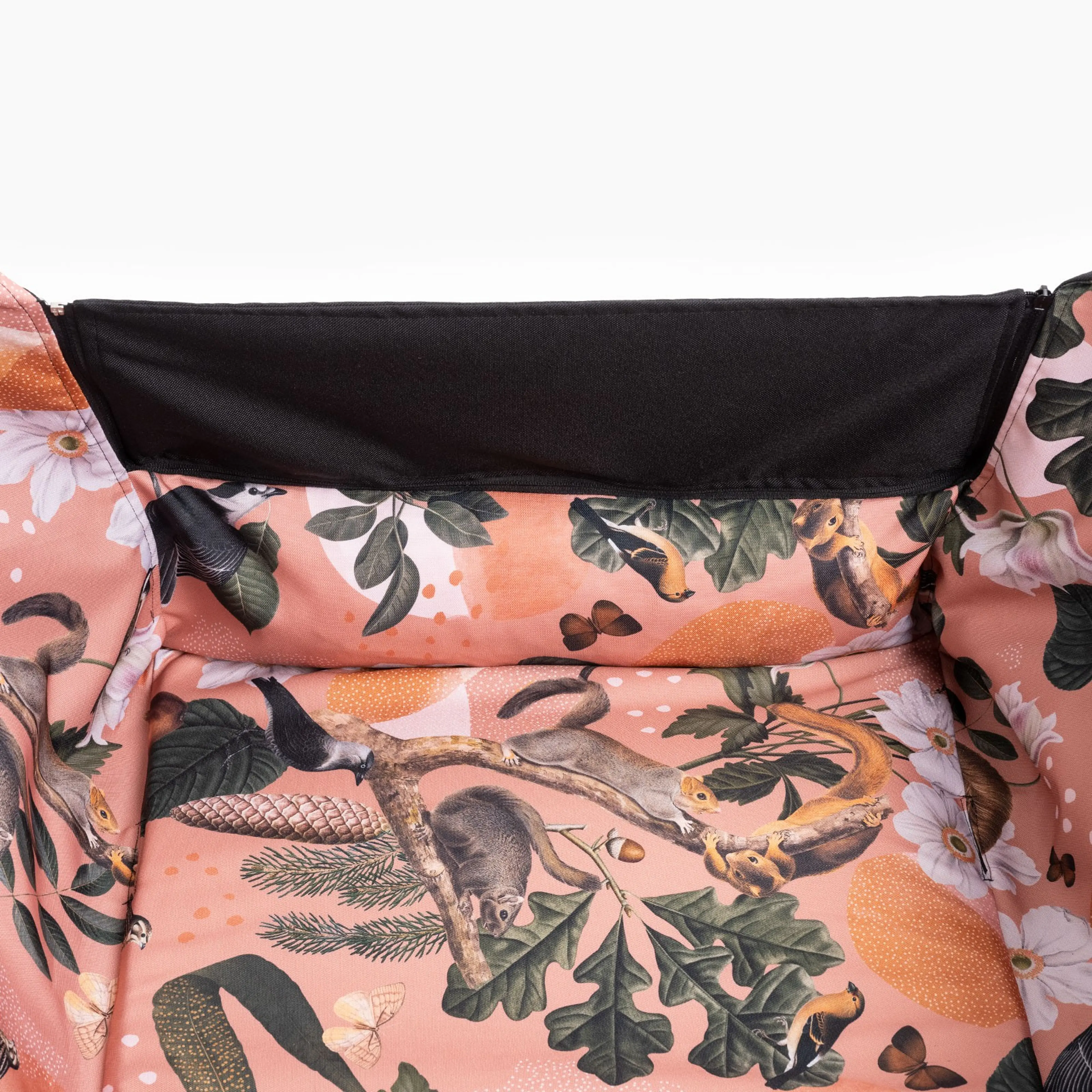 *Każdy fotelik powstaje z materiału ze wzorem, więc poszczególne egzemplarze mogą się różnić zarówno od siebie jak i zdjęcia w związku z użyciem innego fragmentu tkaniny.