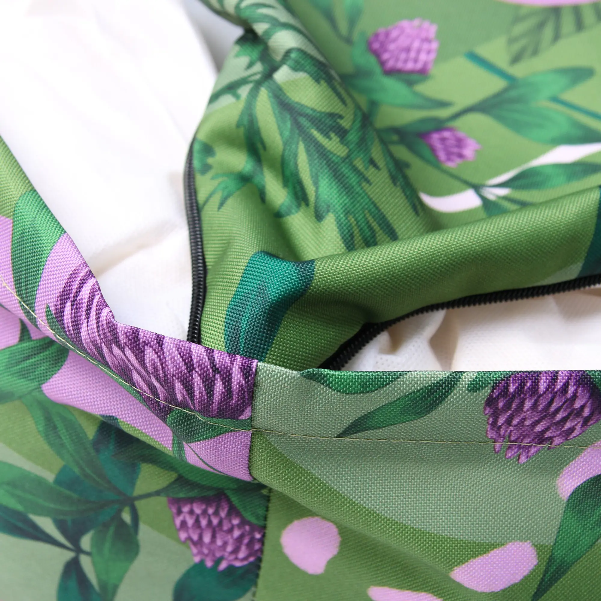 Wzór Bug off to piękna, kwitnąca łąka pełna wspaniałych owadów. Połączenie zieleni z fioletem kwitnącej koniczyny wygląda fenomenalnie i sprawdzi się niemalże w każdym wnętrzu. Pszczoły, żuki, ważki i mnóstwo roślin pięknie się ze sobą komponujących to dzieło super zdolnej ilustratorki Eweliny Dymek.