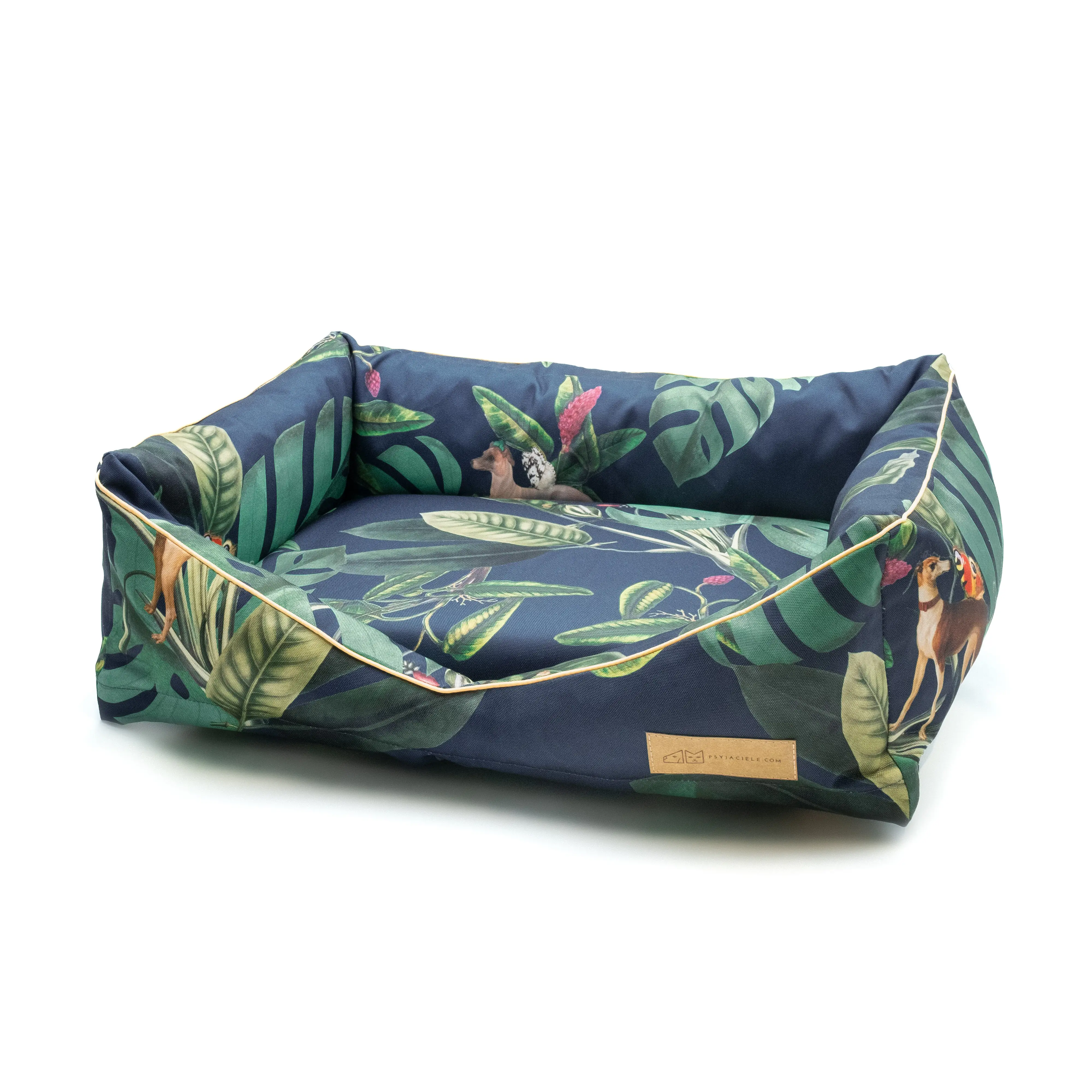 Legowisko dla Psa w kształcie wygodnej kanapy to wysokiej jakości wykonanie połączone z designerskim wzorem i najwyższym komfortem dla Twojego pupila. Wzór zaprojektowany przez wspaniałą kolażystkę Jagodę Stączek pięknie wpasuje się we wnętrze Twojego domu.