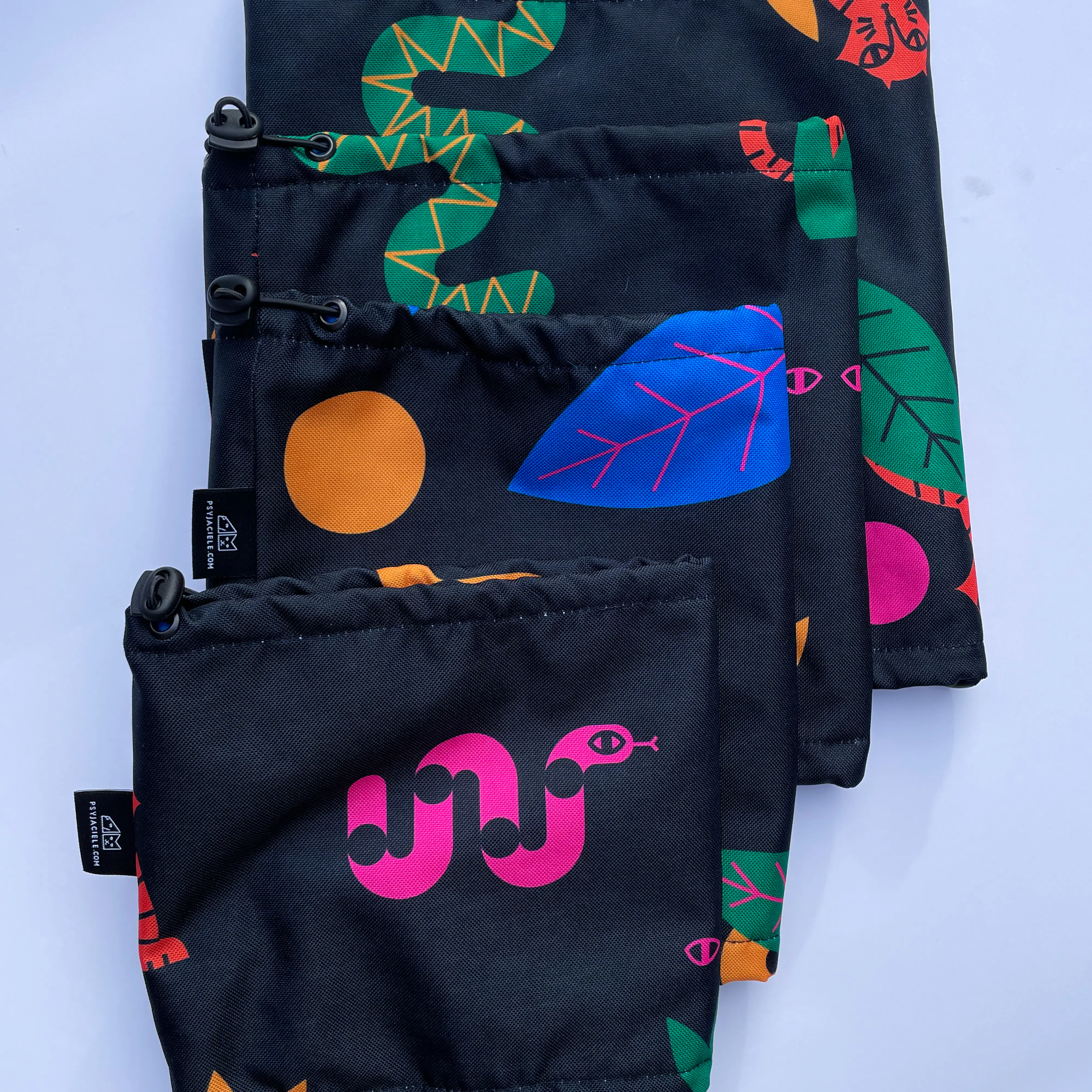 Snood wykonany został z wodoodpornej tkaniny ze wzorem odpornej na wiatr. Materiał jest wodoodporny, ale nie wodoszczelny, komin jest przeznaczony na chłody i mrozy, a nie na deszcz. Wnętrze to mięciutki polar zapewniający ciepełko nawet największemu zmarzlakowi.