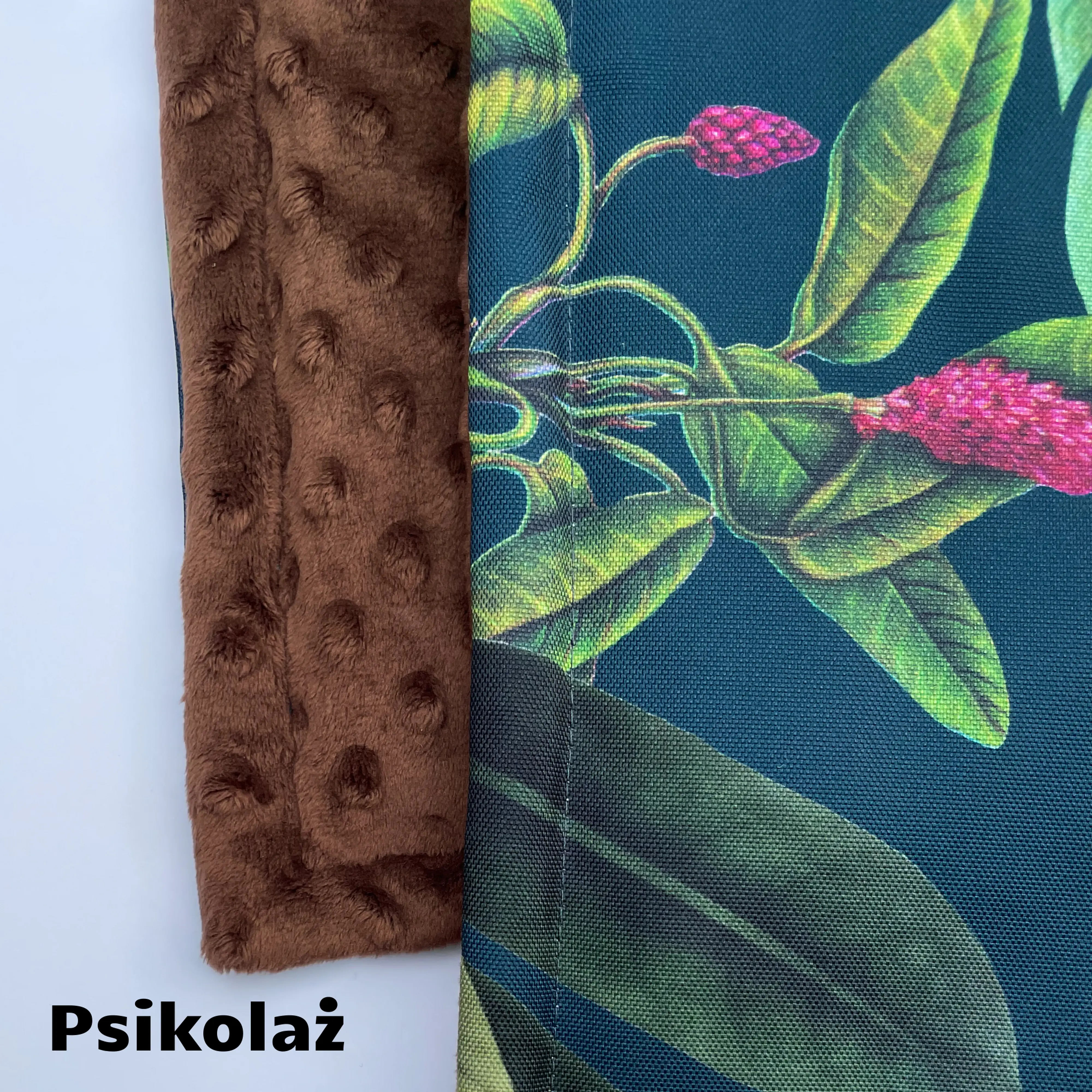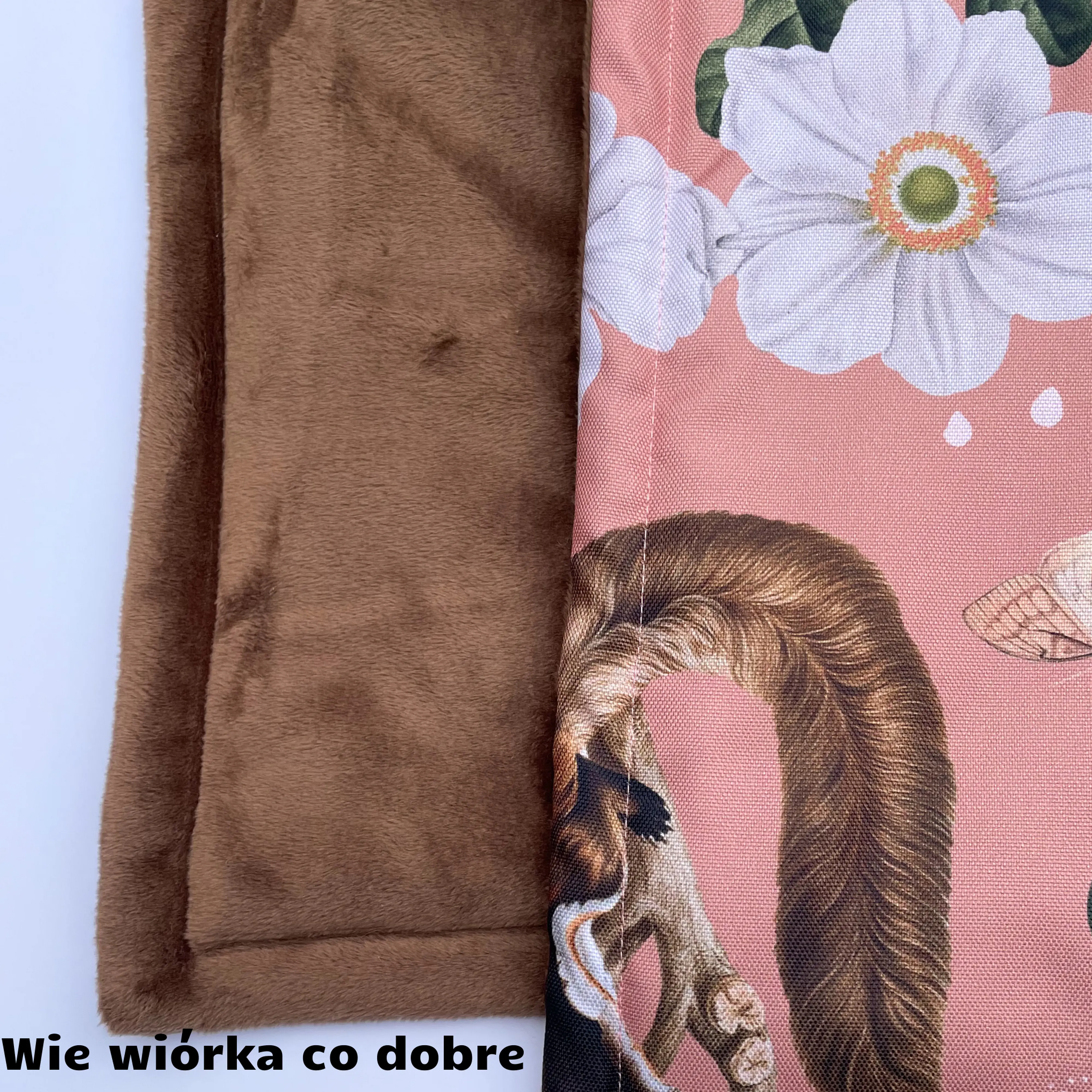 Wysokiej jakości materiał wodoodporny charakteryzujący się odpornością na wchłanianie pyłu, brudu i sierści. Niezwykle łatwy w czyszczeniu, szybko schnący po wypraniu. Druga strona to puszysty polar.
