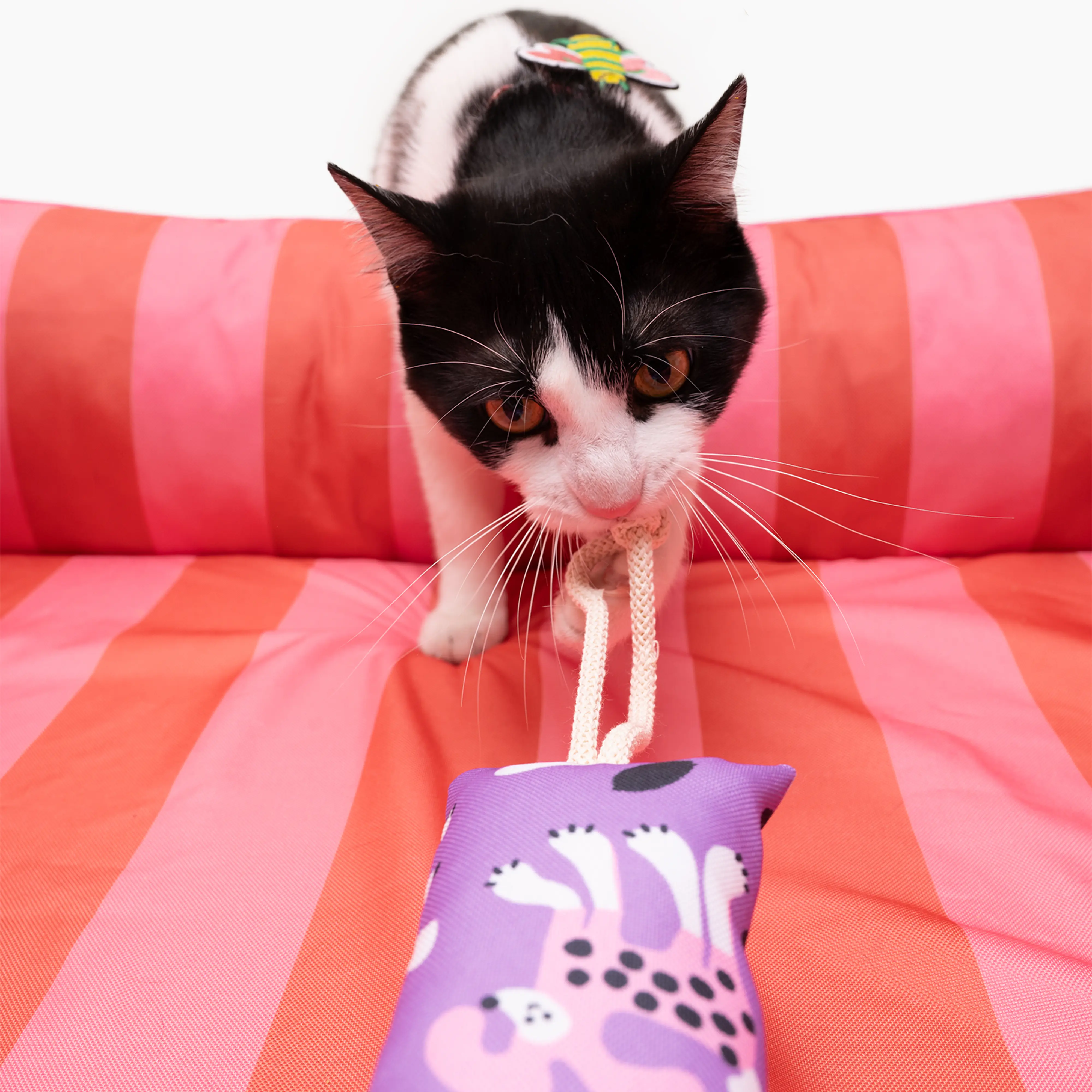 Kopacz to miękka zabawka stworzona z myślą o naturalnych potrzebach kota – idealna do kopania, gryzienia i aktywnej zabawy całym ciałem. Wyjątkowe połączenie przyjemnych w dotyku materiałów z dodatkiem waleriany lub kocimiętki czyni go atrakcyjnym dla Twojego pupila.