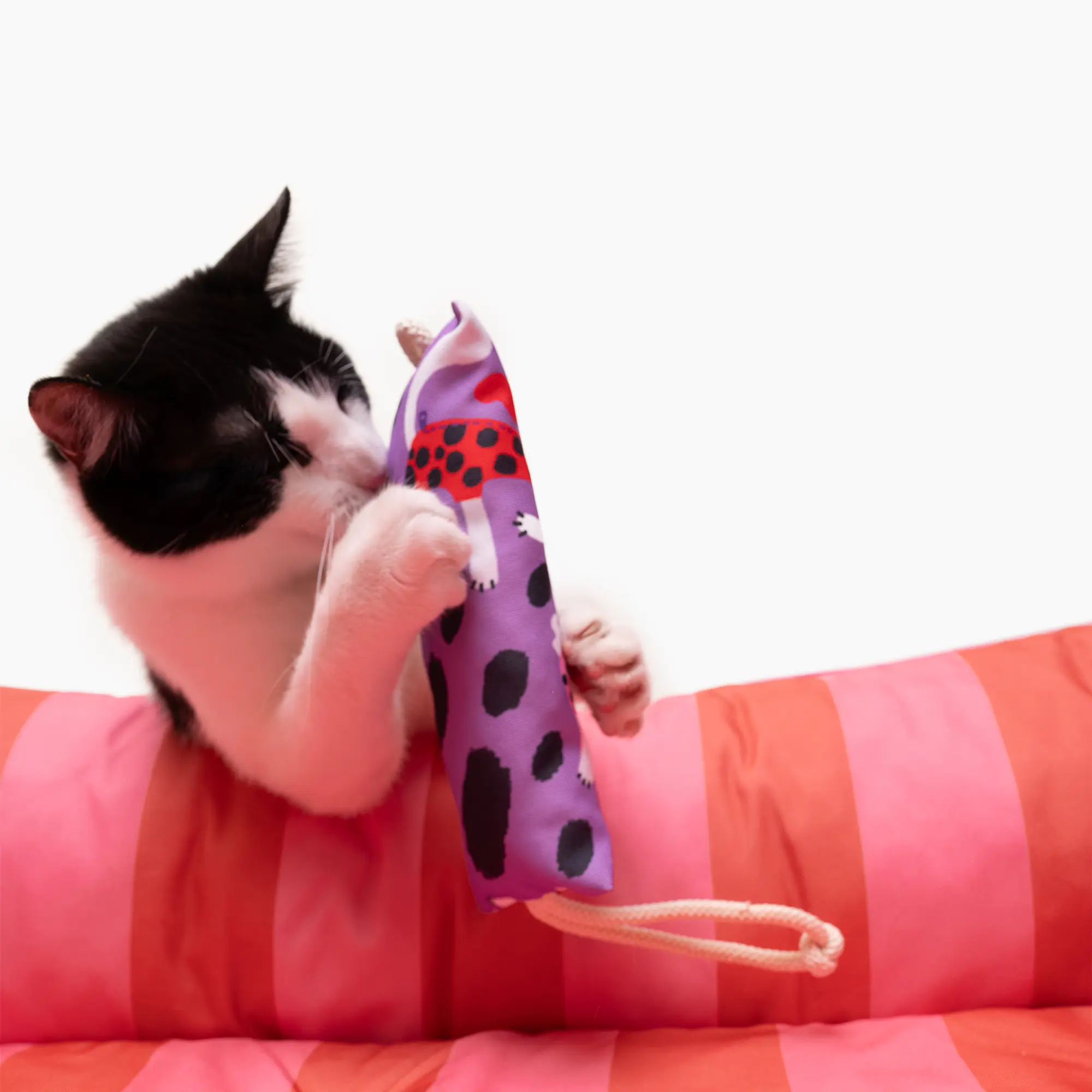 Kopacz to miękka zabawka stworzona z myślą o naturalnych potrzebach kota – idealna do kopania, gryzienia i aktywnej zabawy całym ciałem. Wyjątkowe połączenie przyjemnych w dotyku materiałów z dodatkiem waleriany lub kocimiętki czyni go atrakcyjnym dla Twojego pupila.