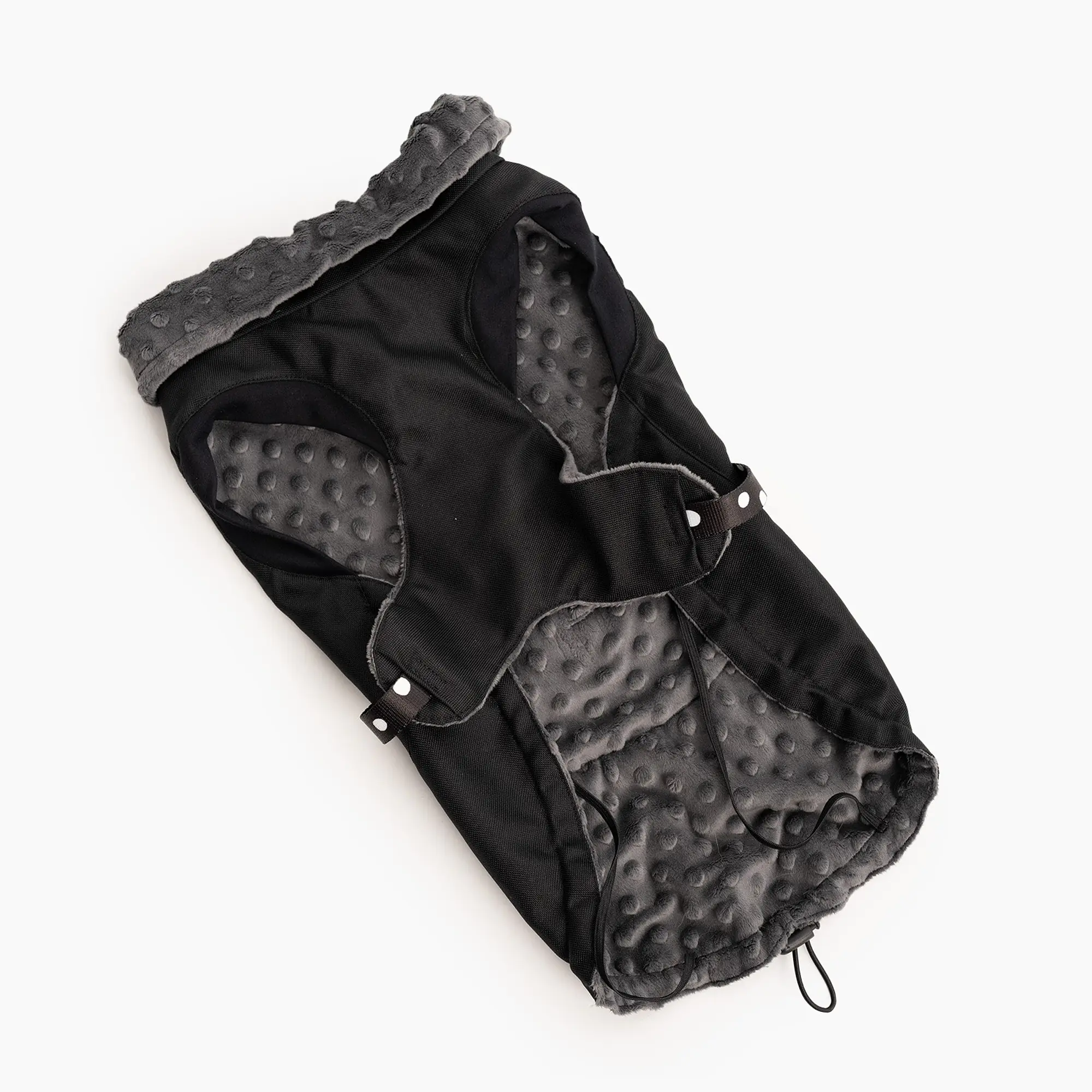 Do kurtki można dodać dodatkowe ocieplenie - między materiał i polar dodajemy ocieplinę 60 g (stosowaną w kurtkach dla ludzi), która nie pogrubiając zbytnio kurtki sprawia, że jest jeszcze cieplejsza.