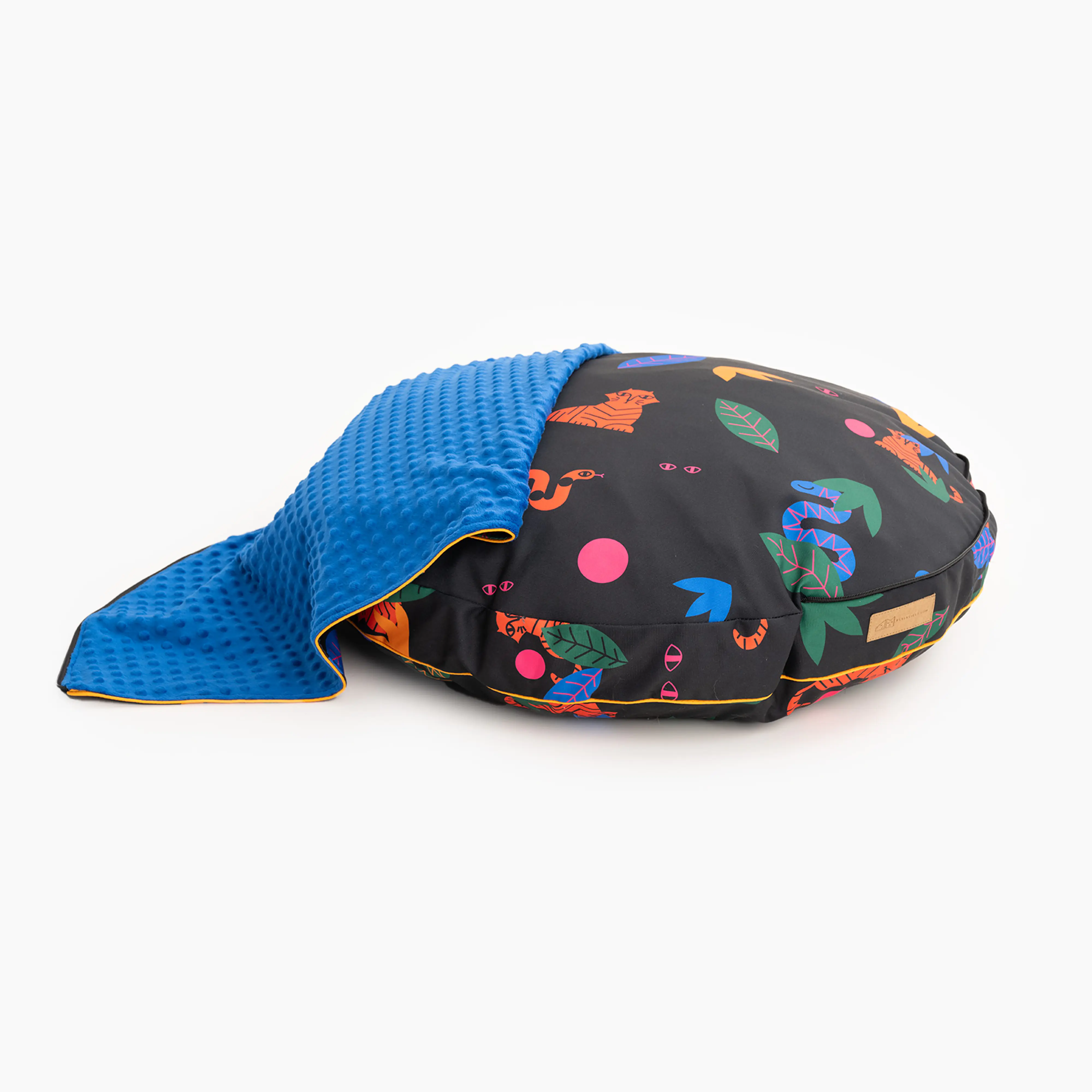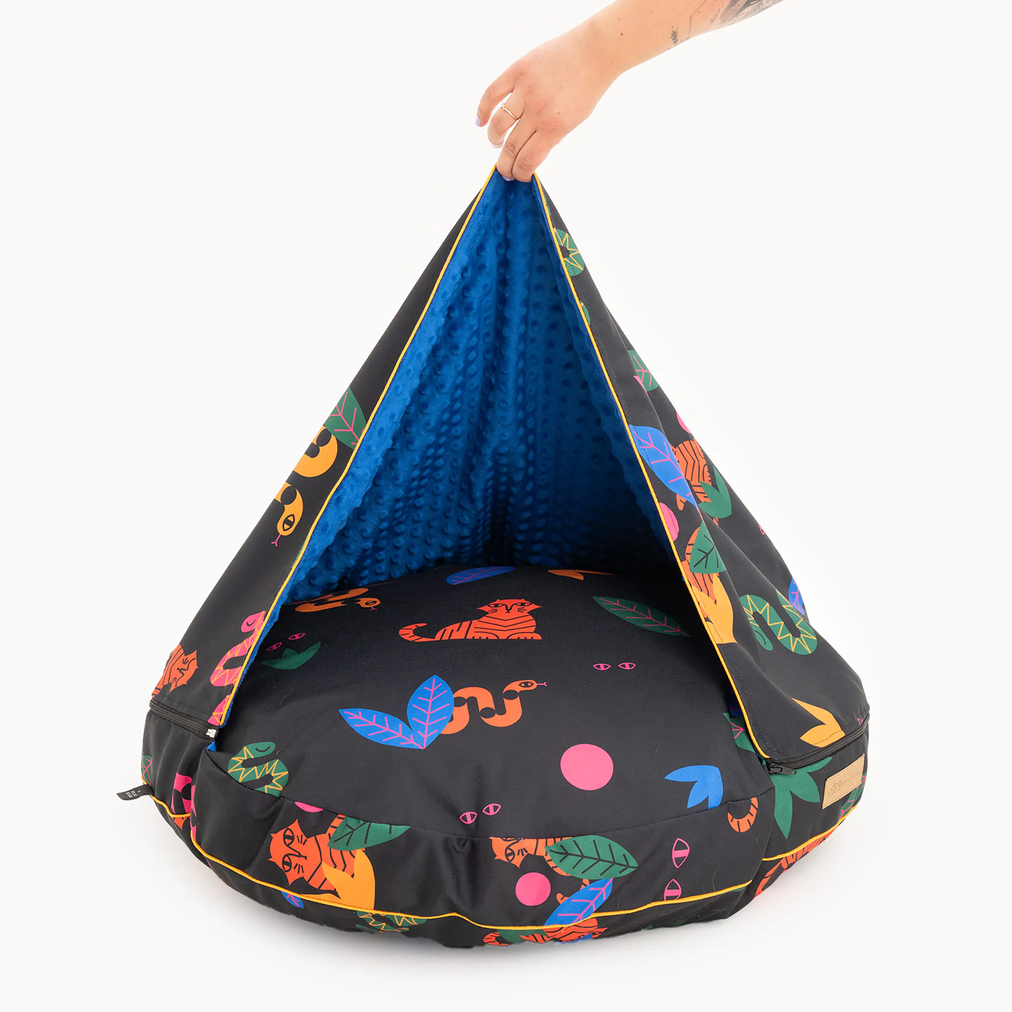 Każde legowisko powstaje z materiału ze wzorem, więc poszczególne egzemplarze mogą się różnić zarówno od siebie jak i od zdjęcia w związku z użyciem innego fragmentu tkaniny.