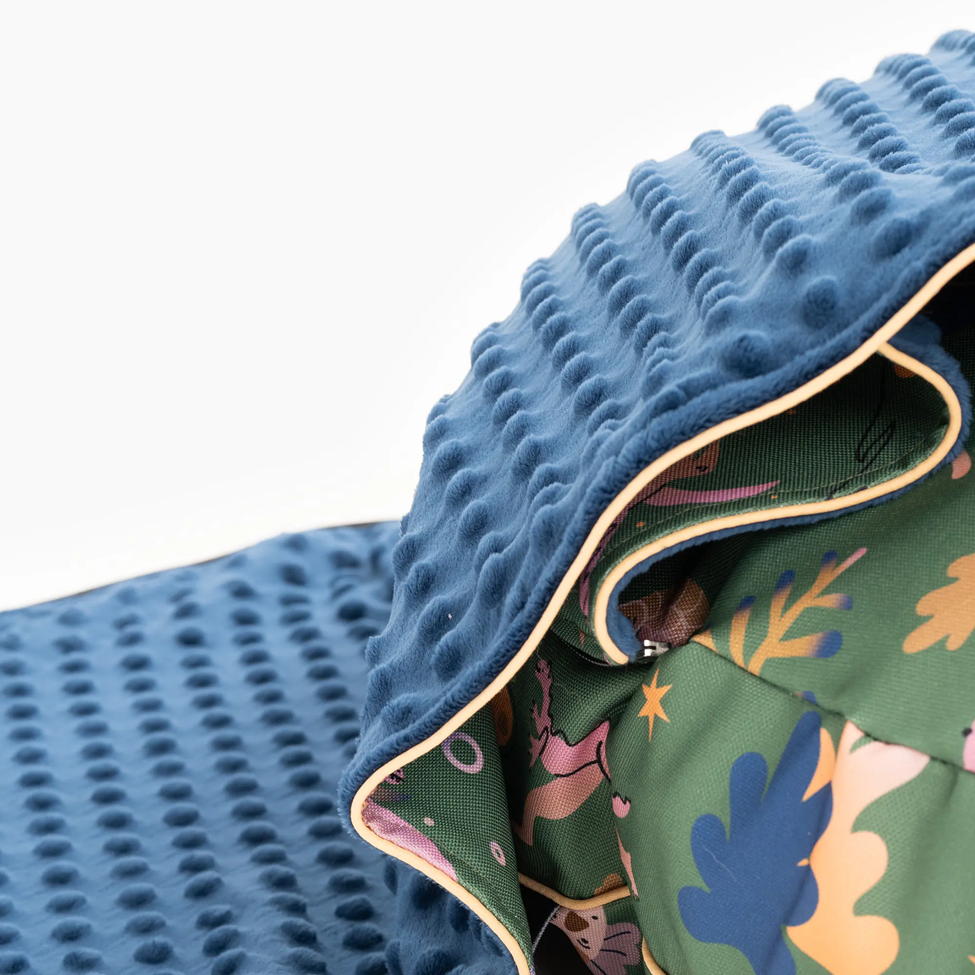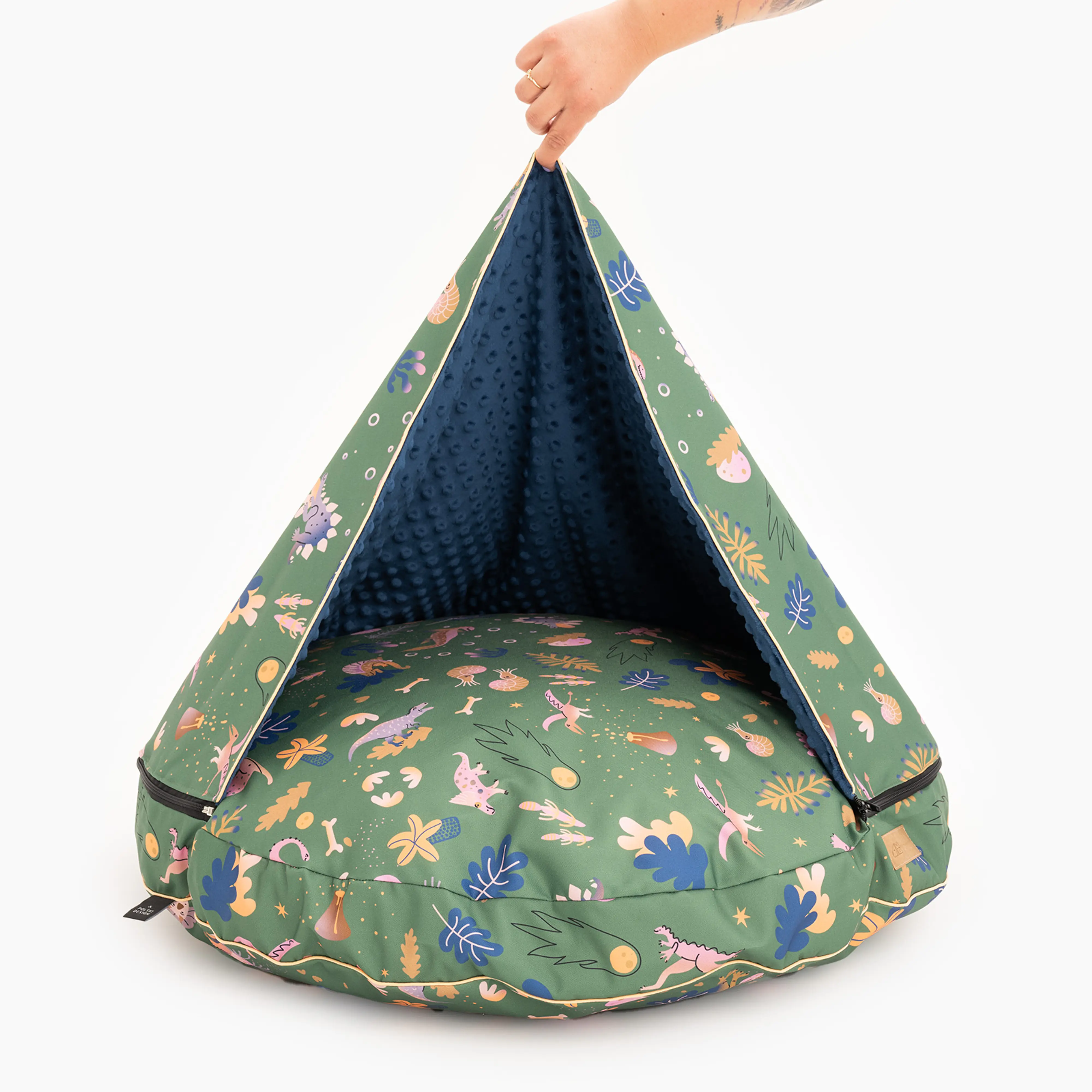Każde legowisko powstaje z materiału ze wzorem, więc poszczególne egzemplarze mogą się różnić zarówno od siebie jak i od zdjęcia w związku z użyciem innego fragmentu tkaniny.