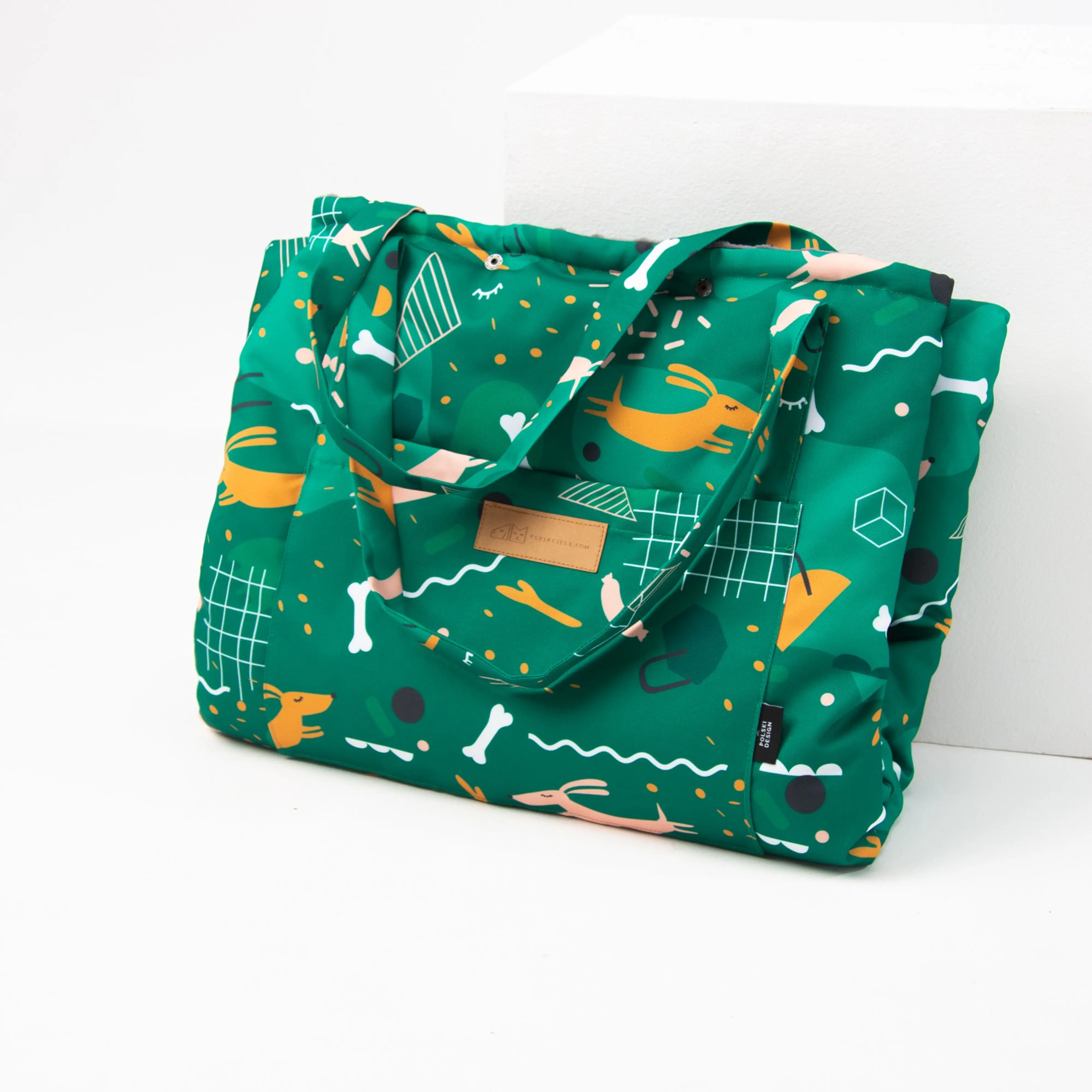 Our mat or bag for a dog or a cat is an innovative product on the Polish market that allows you to take a bed for our pet wherever we want. It works great in the park, by the water, in the car or during forest walks. Mat-bag is a high-quality workmanship combined with a great pattern and the highest comfort for your pet. The pattern designed by the wondrerful illustrator Pola Augustynowicz makes the mat-bag even more unique.