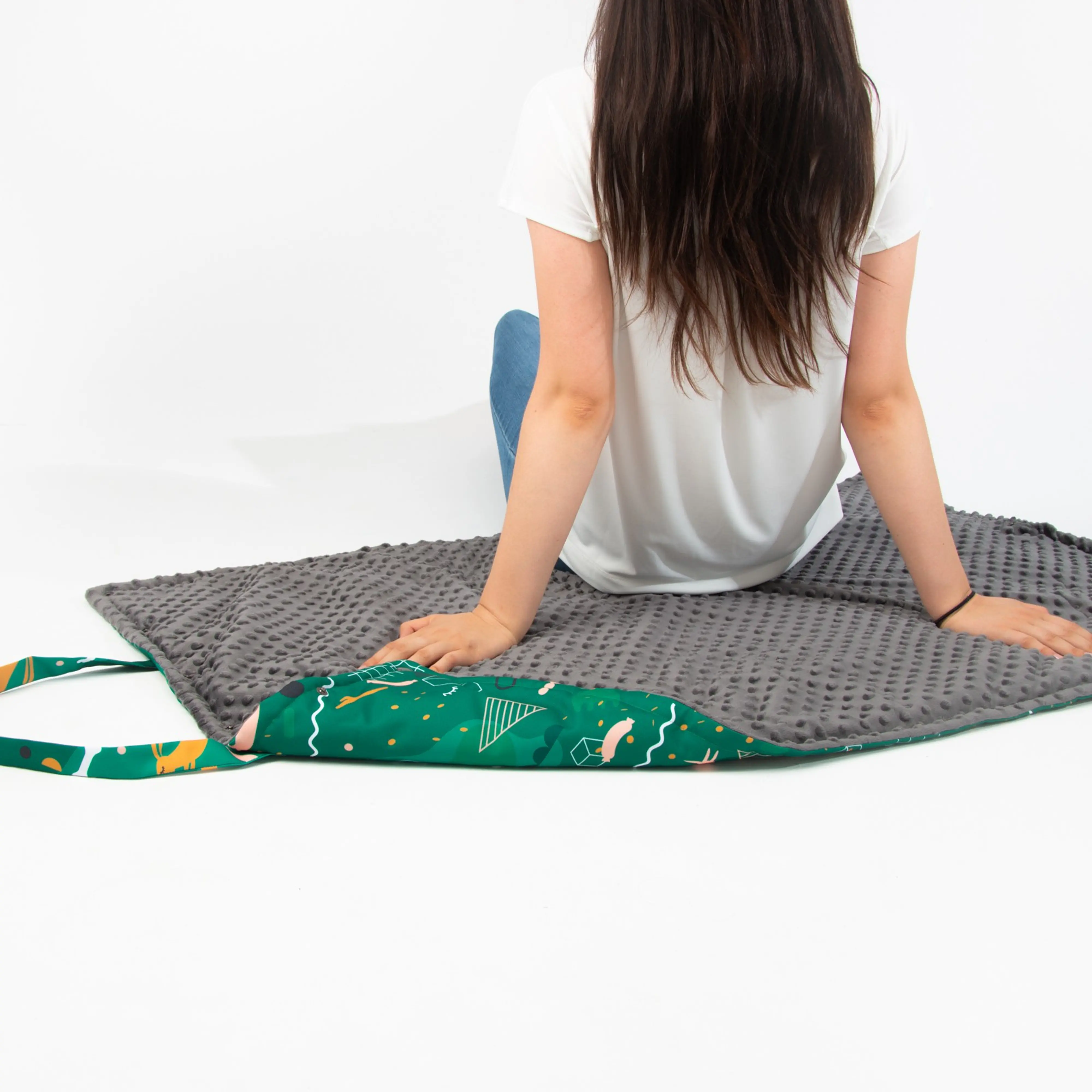 Key product features: High-quality, waterproof material; Original design, available only at Psyjaciele.com; Washable; Double-sided pattern allowing longer to enjoy its use; The shape of the bag allows you to take the lair to any place; Latches for easy folding/unfolding; Large size of the mat after unfolding.
