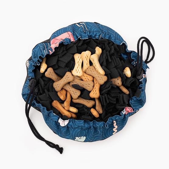 Nasza mata węchowa to świetna zabawka dla Twojego psiaka. Gęsty polar pozwala ukryć dużą ilość smaczków, antypoślizgowe dno wzmacnia stabilność, a pomysłowy ściągacz po dwóch stronach pozwala zwiększać lub zmniejszać poziom trudności.To świetna zabawa dla Twojego psa, która pozwoli na długo zająć zwierzaka i nawet lekko zmęczyć :)