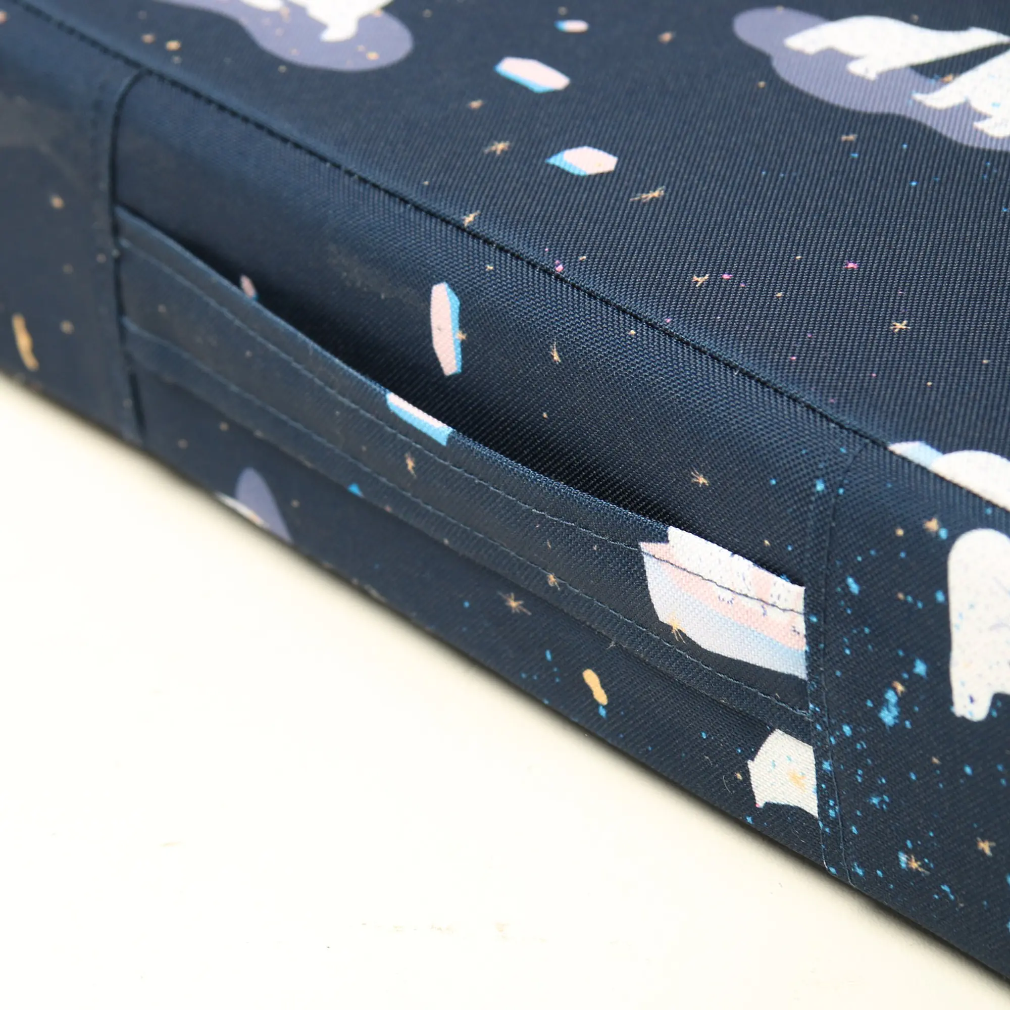 Wzór Miś Polargol to cudowny, delikatny wzór łączący w sobie islandzką zorzę polarną ze słodkimi niedźwiadkami. Rozgwieżdżone niebo i wylegujące się niedźwiadki świetnie uzupełniają się tworząc piękny ale delikatny wzór. Granat z delikatnymi akcentami kolorystycznymi pięknie wpasuje się w każde wnętrze.