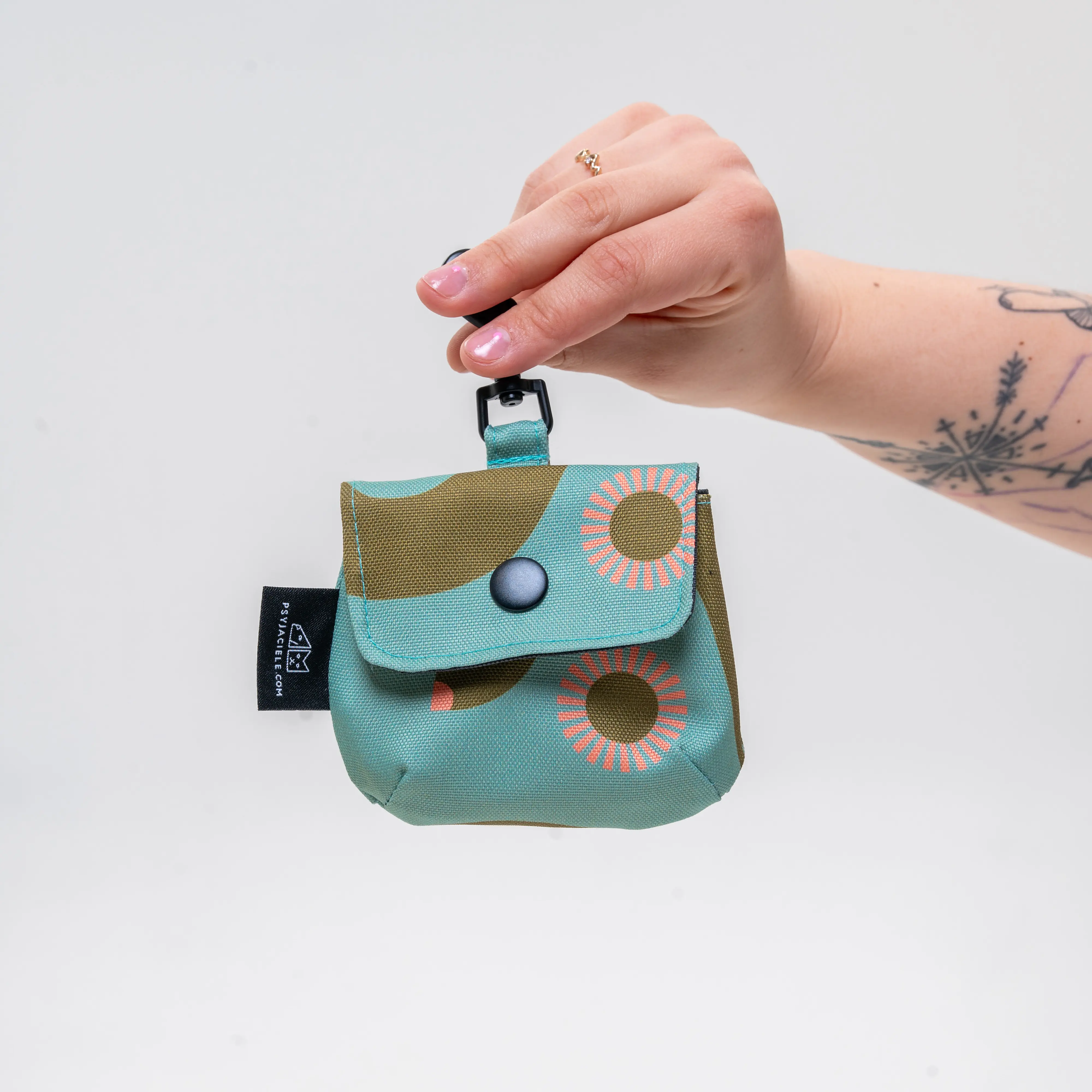 Dzięki kompaktowemu rozmiarowi i wygodnemu karabińczykowi, saszetkę z łatwością przypniesz do nerki, smyczy czy szlufki od spodni – zawsze pod ręką, zawsze gotowa do użycia.