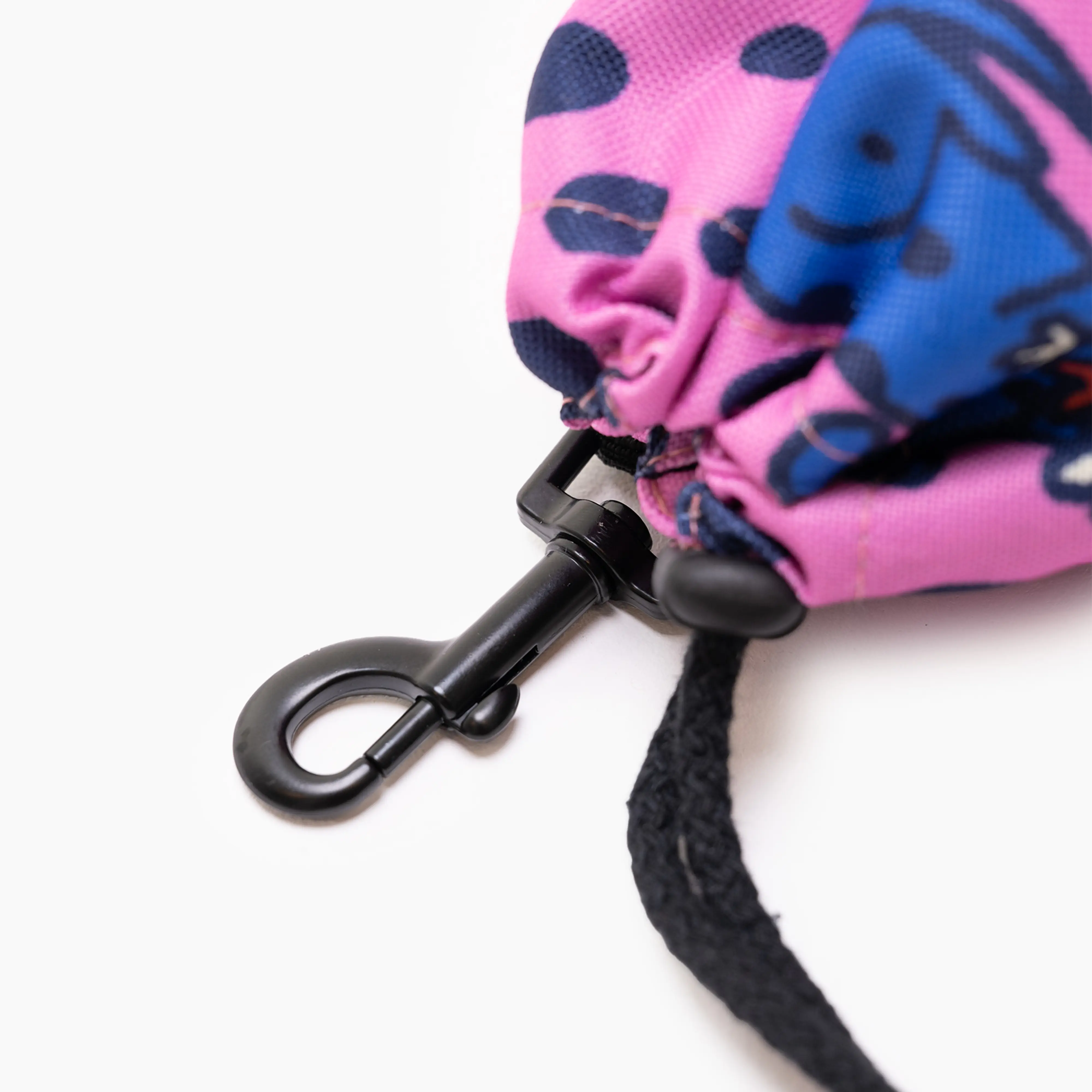 Nasza saszetka treningowa na smaczki to nie tylko wyjątkowy wygląd ale i duża funkcjonalność. Idealne uzupełnienie każdego spacerowego zestawu sprawdzi się dobrze dzięki dwóm rodzajom zastosowanego materiału. Na zewnątrz saszetki znajduje się wodoodporny materiał ze wzorem, wewnątrz natomiast jest wkład z gumowanego materiału odpornego na tłuszczyk z psich i kocich smaczków. Wkład można wywinąć po każdym spacerze i przemyć wilgotną ściereczką.