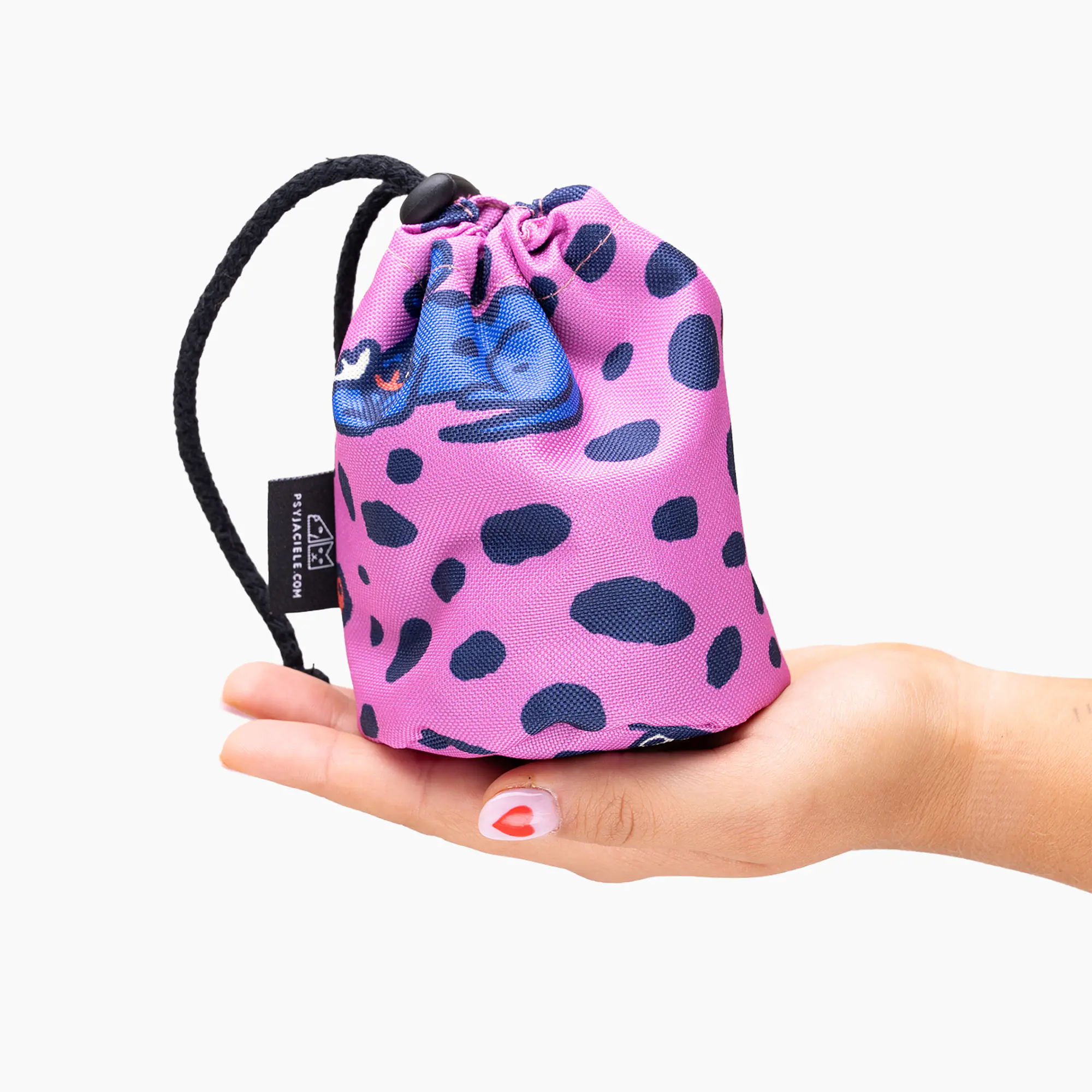 Nasza saszetka treningowa na smaczki to nie tylko wyjątkowy wygląd ale i duża funkcjonalność. Idealne uzupełnienie każdego spacerowego zestawu sprawdzi się dobrze dzięki dwóm rodzajom zastosowanego materiału. Na zewnątrz saszetki znajduje się wodoodporny materiał ze wzorem, wewnątrz natomiast jest wkład z gumowanego materiału odpornego na tłuszczyk z psich i kocich smaczków. Wkład można wywinąć po każdym spacerze i przemyć wilgotną ściereczką.
