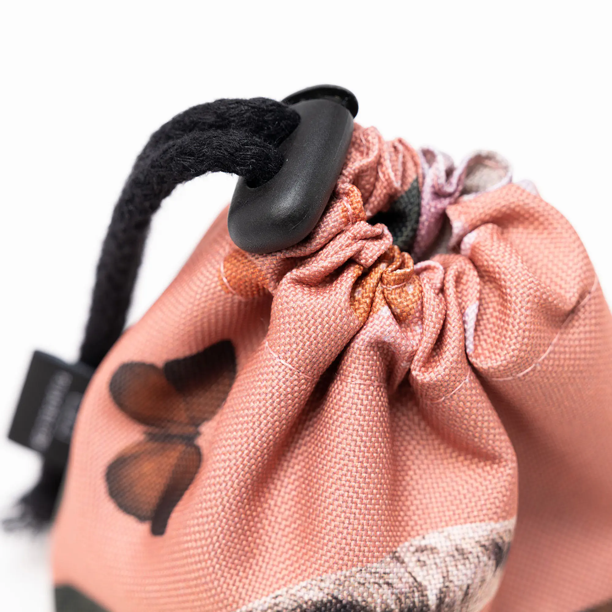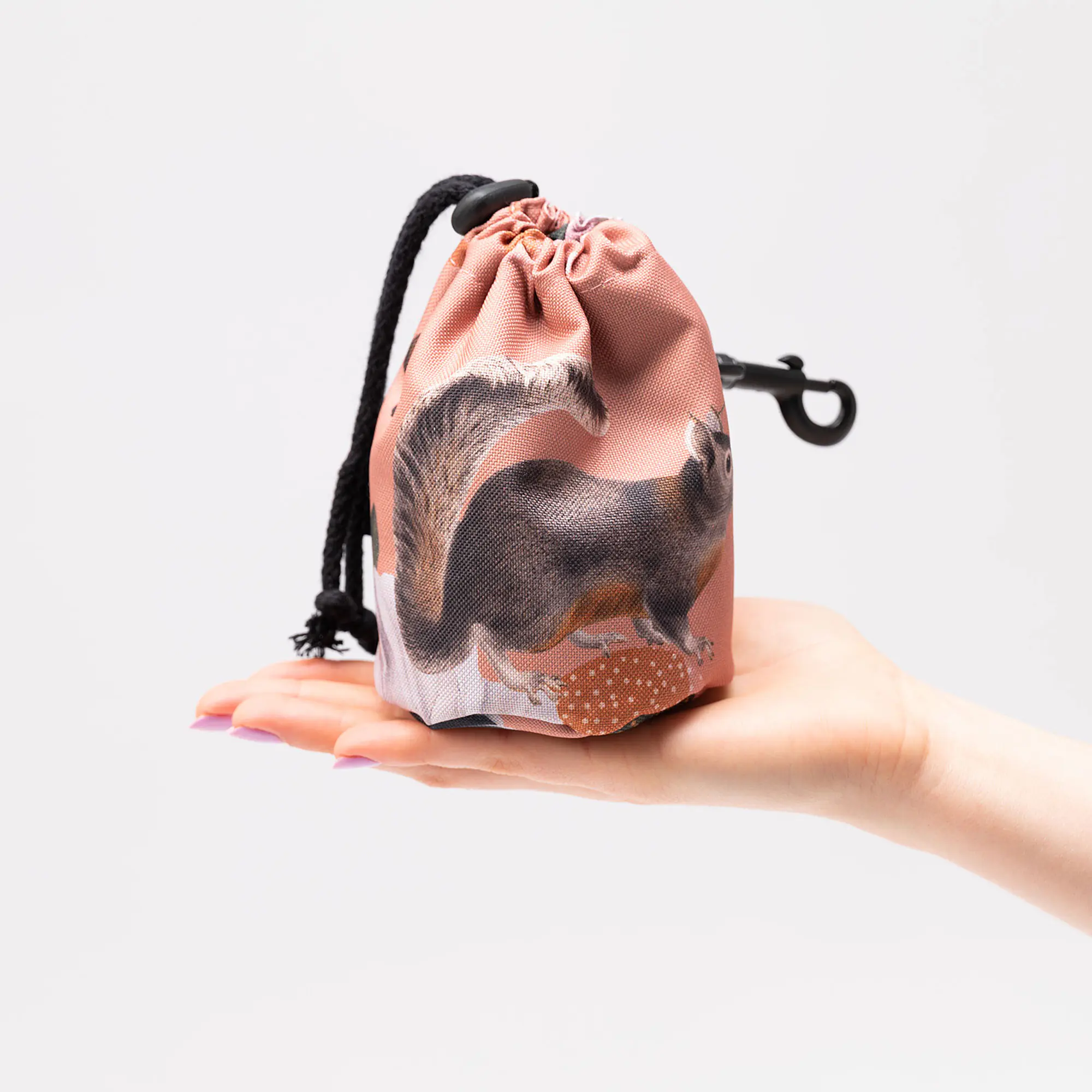 Nasza saszetka treningowa na smaczki to nie tylko wyjątkowy wygląd ale i duża funkcjonalność. Idealne uzupełnienie każdego spacerowego zestawu sprawdzi się dobrze dzięki dwóm rodzajom zastosowanego materiału. Na zewnątrz saszetki znajduje się wodoodporny materiał ze wzorem, wewnątrz natomiast jest wkład z gumowanego materiału odpornego na tłuszczyk z psich i kocich smaczków. Wkład można wywinąć po każdym spacerze i przemyć wilgotną ściereczką.