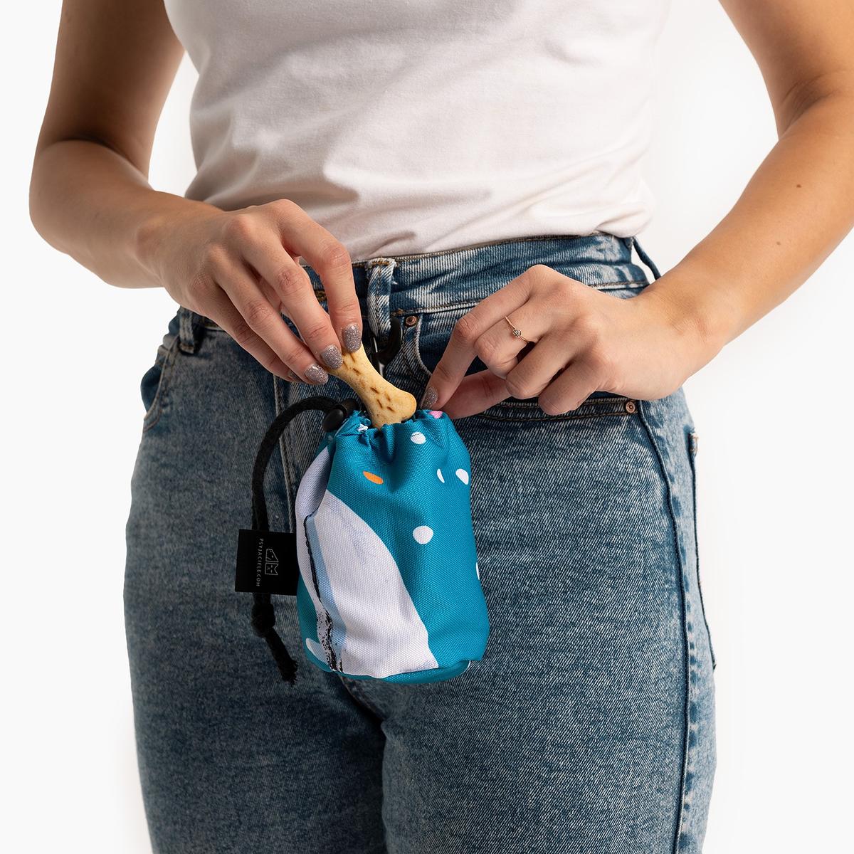 Our snack training bag is not only unique in appearance but also highly functional. The perfect complement to any walking set, it will work well thanks to the two types of material used. Outside the sachet there is a waterproof material with a pattern, while inside there is a insert made of rubberized material… more ↗