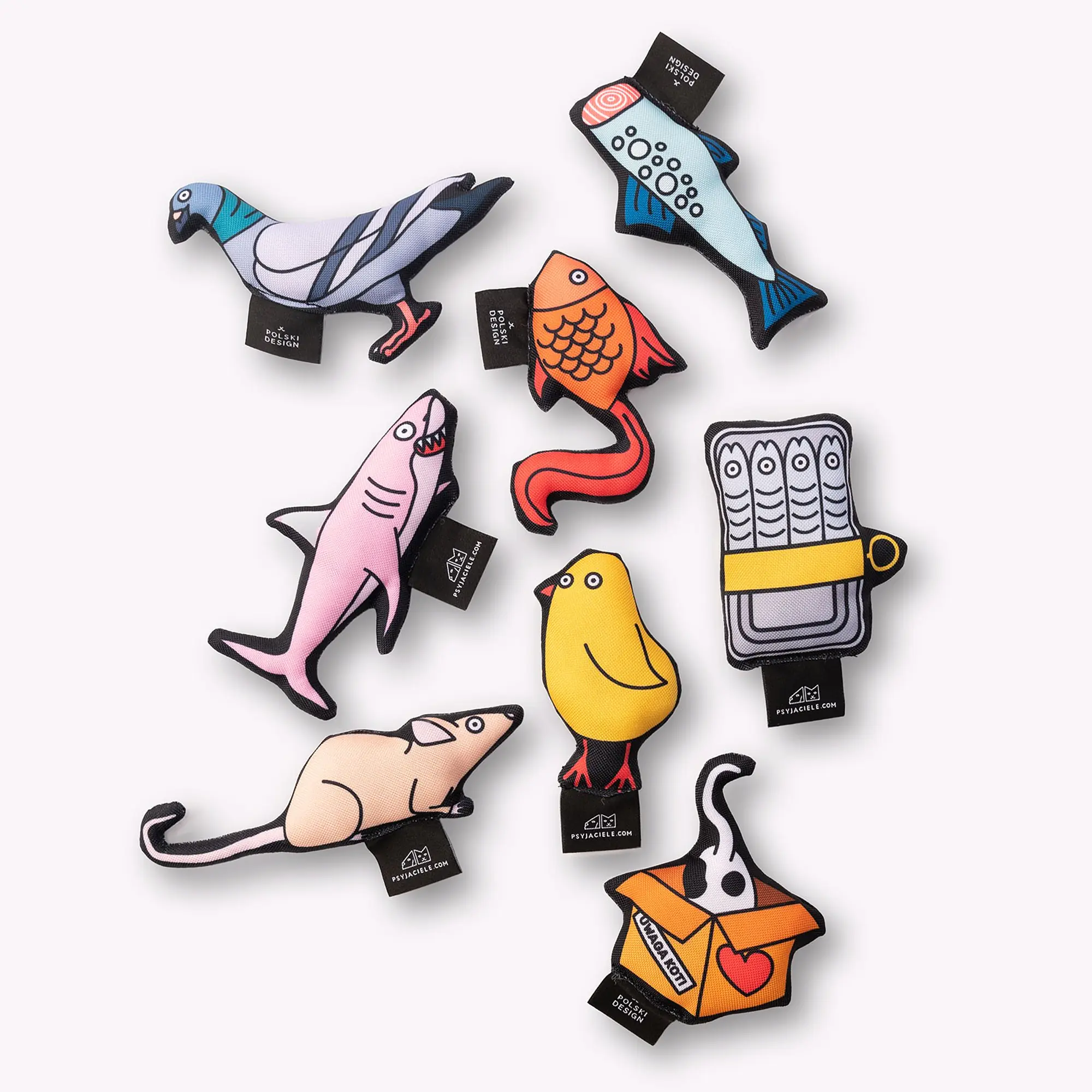 Nasza zabawka w kształcie kota w pudełku sprawi radość każdemu kociakowi. Zabawka uszyta jest z mocnego, wodoodpornego materiału; w środku wypełniona została miękką owatą oraz odrobiną kocimiętki, za którą szaleją wszystkie kociaki. Ciekawy wzór zaprojektowany przez wspaniałą ilustratorkę Adelę Madej sprawi, że każdy pupil będzie zadowolony z takiego prezentu