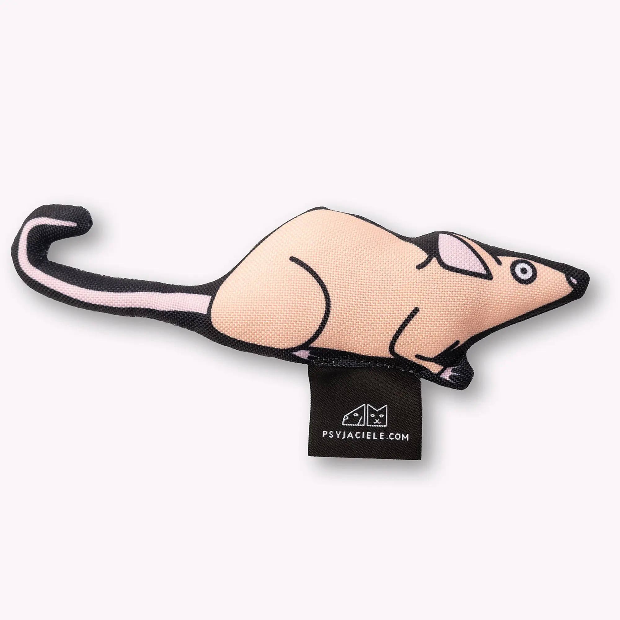 Nasza zabawka w kształcie szczura sprawi radość każdemu kociakowi. Zabawka uszyta jest z mocnego, wodoodpornego materiału; w środku wypełniona została miękką owatą oraz odrobiną kocimiętki, za którą szaleją wszystkie kociaki. Ciekawy wzór zaprojektowany przez wspaniałą ilustratorkę Adelę Madej sprawi, że każdy pupil będzie zadowolony z takiego prezentu