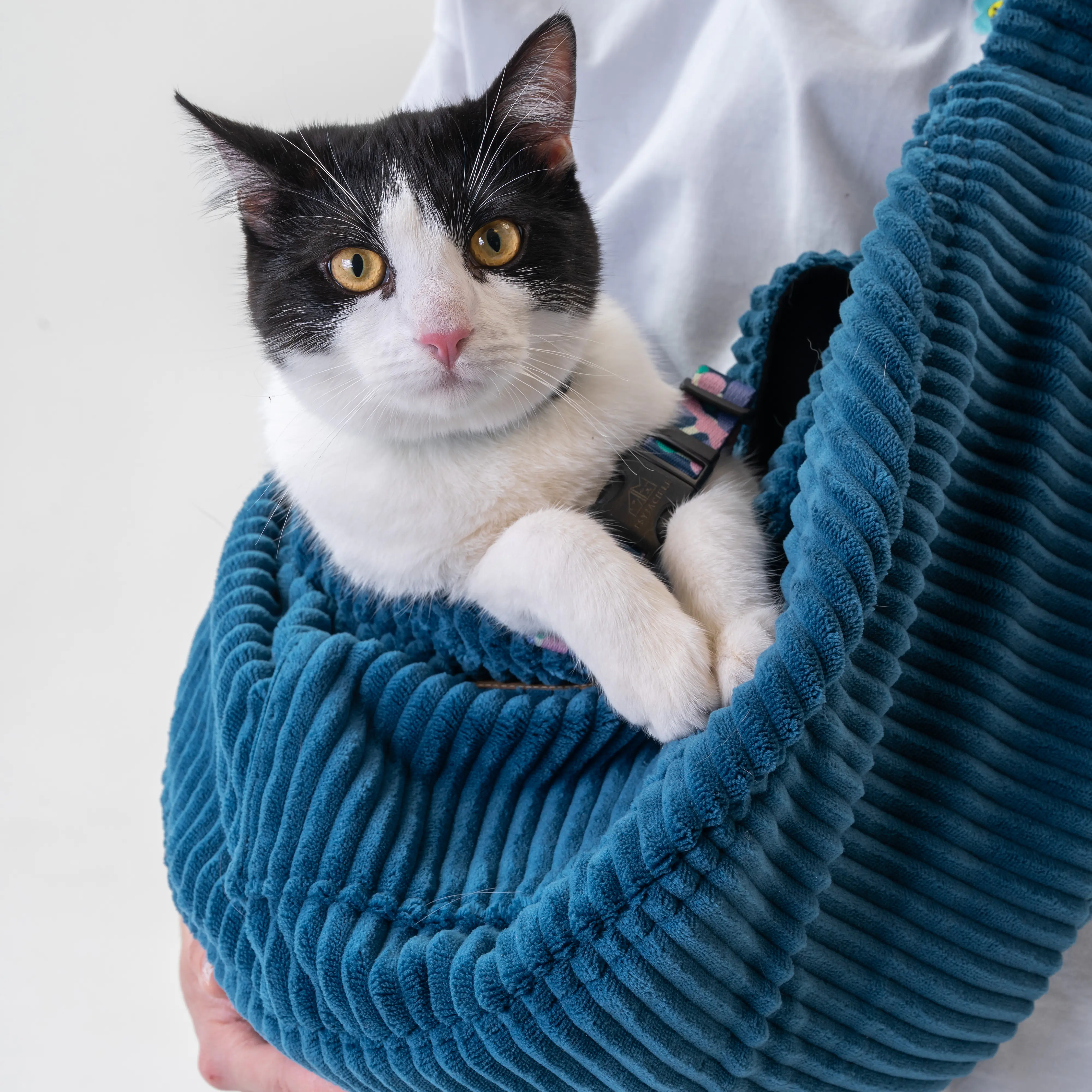 Nosidło zostało zaprojektowane z myślą o komforcie zarówno psa, jak i jego opiekuna. Miękka tkanina sztruksowa jest nie tylko przyjemna w dotyku, ale również wystarczająco mocna, by wytrzymać codzienne użytkowanie. Dzięki solidnym materiałom i prostemu, ale funkcjonalnemu designowi, nosidło jest łatwe do założenia i idealnie dopasowuje się do psa. Jeśli szukasz praktycznego sposobu na transportowanie swojego czworonoga w miejskim zgiełku, to nosidło będzie strzałem w dziesiątkę!