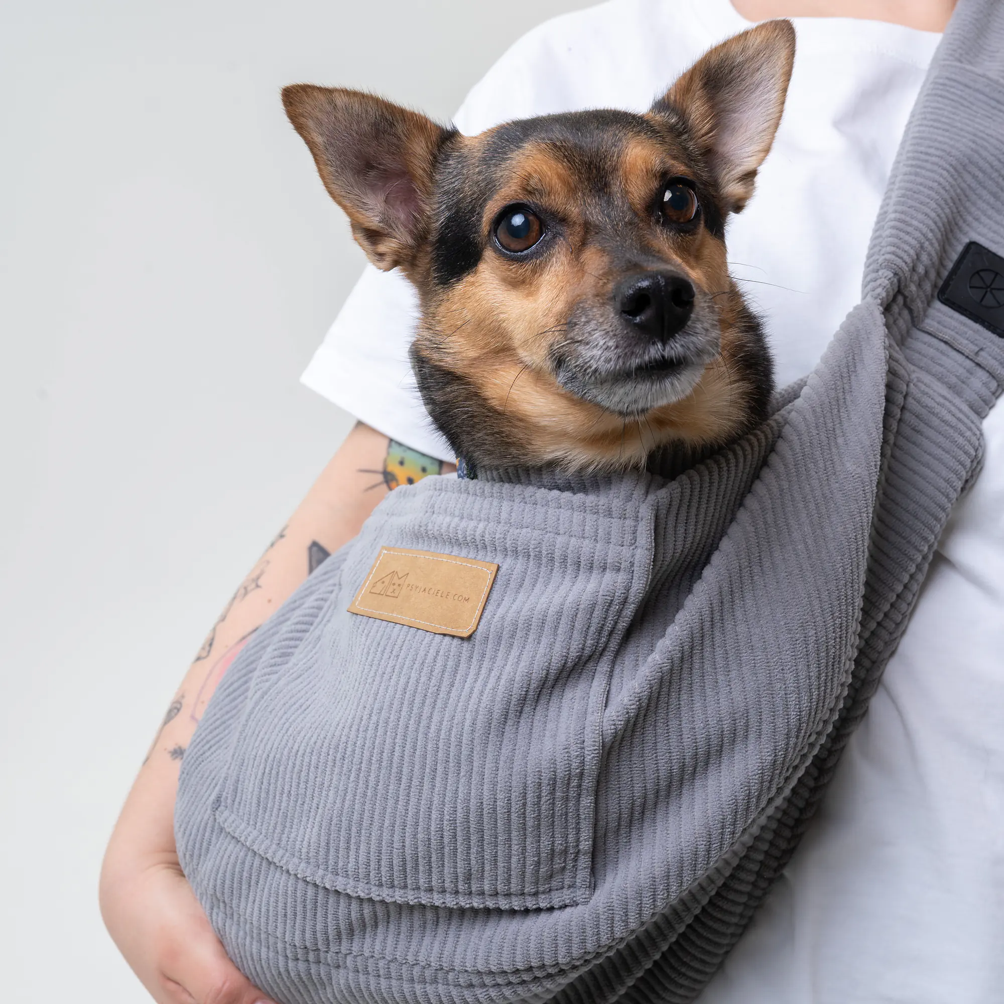 Nosidło zostało zaprojektowane z myślą o komforcie zarówno psa, jak i jego opiekuna. Miękka tkanina sztruksowa jest nie tylko przyjemna w dotyku, ale również wystarczająco mocna, by wytrzymać codzienne użytkowanie. Dzięki solidnym materiałom i prostemu, ale funkcjonalnemu designowi, nosidło jest łatwe do założenia i idealnie dopasowuje się do psa. Jeśli szukasz praktycznego sposobu na transportowanie swojego czworonoga w miejskim zgiełku, to nosidło będzie strzałem w dziesiątkę!