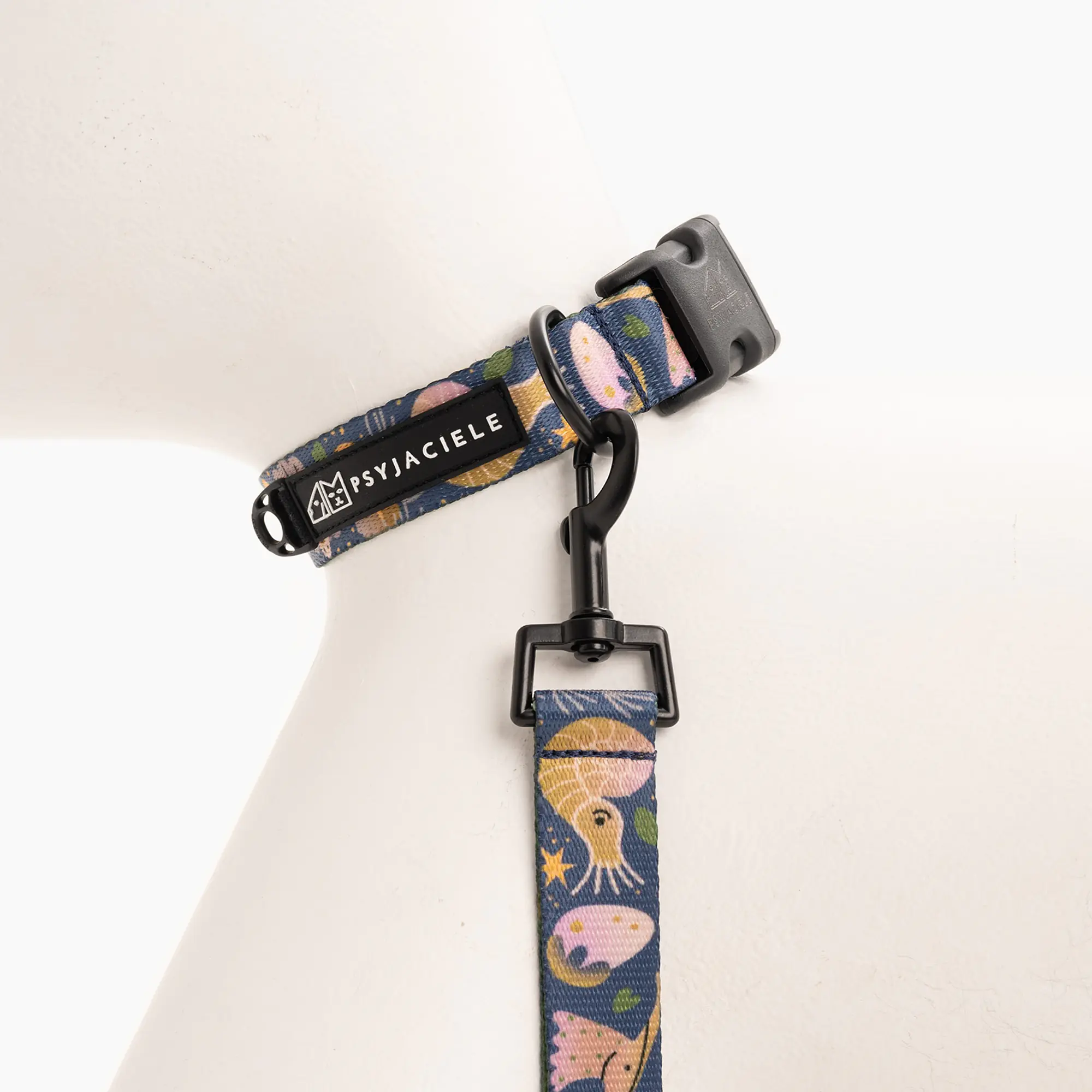Obroża została wykonana ręcznie w Polsce, z najwyższej jakości materiałów gwarantujących długie i wygodne użytkowanie. Do obroży możesz dopasować smycz zwykła lub przepinaną oraz etui na kupoworki.