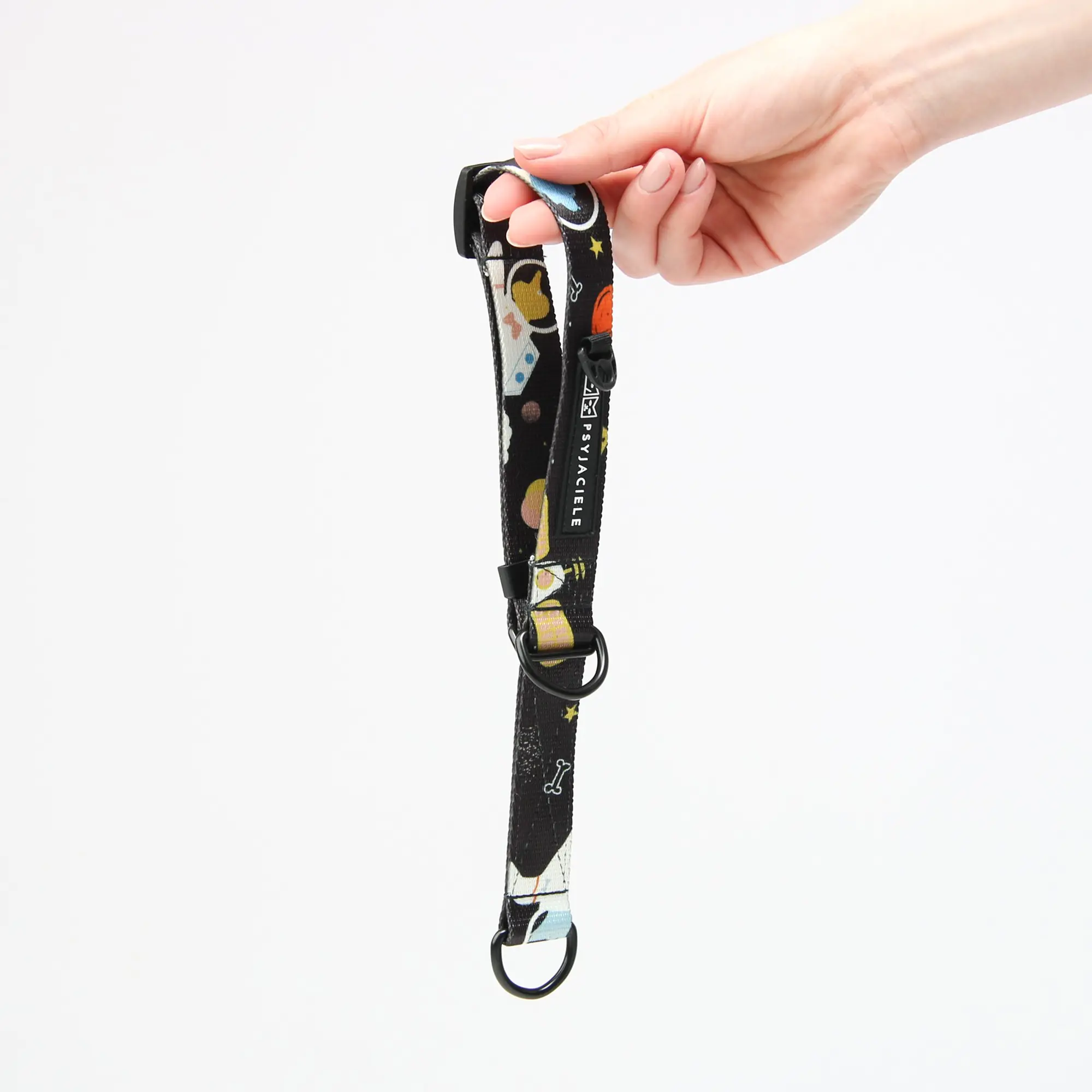 Wzór I need space to kosmiczne psiaki lewitujące w gwiezdnym niebie pełnym psich elementów. Połączenie pięknego granatu a mocnymi kolorami sprawi, że Twój psiak na spacerze będzie wyglądał lepiej niż niejedna gwiazda internetu. Wyraziste kolory przepięknie skomponują się z sierścią Twojego psiaka! Ubierz swojego psiaka w designerski wzór, a każdy spacer będzie super psyjemny. Wzór został zaprojektowany przez wspaniałą ilustratorkę Linę Lark.