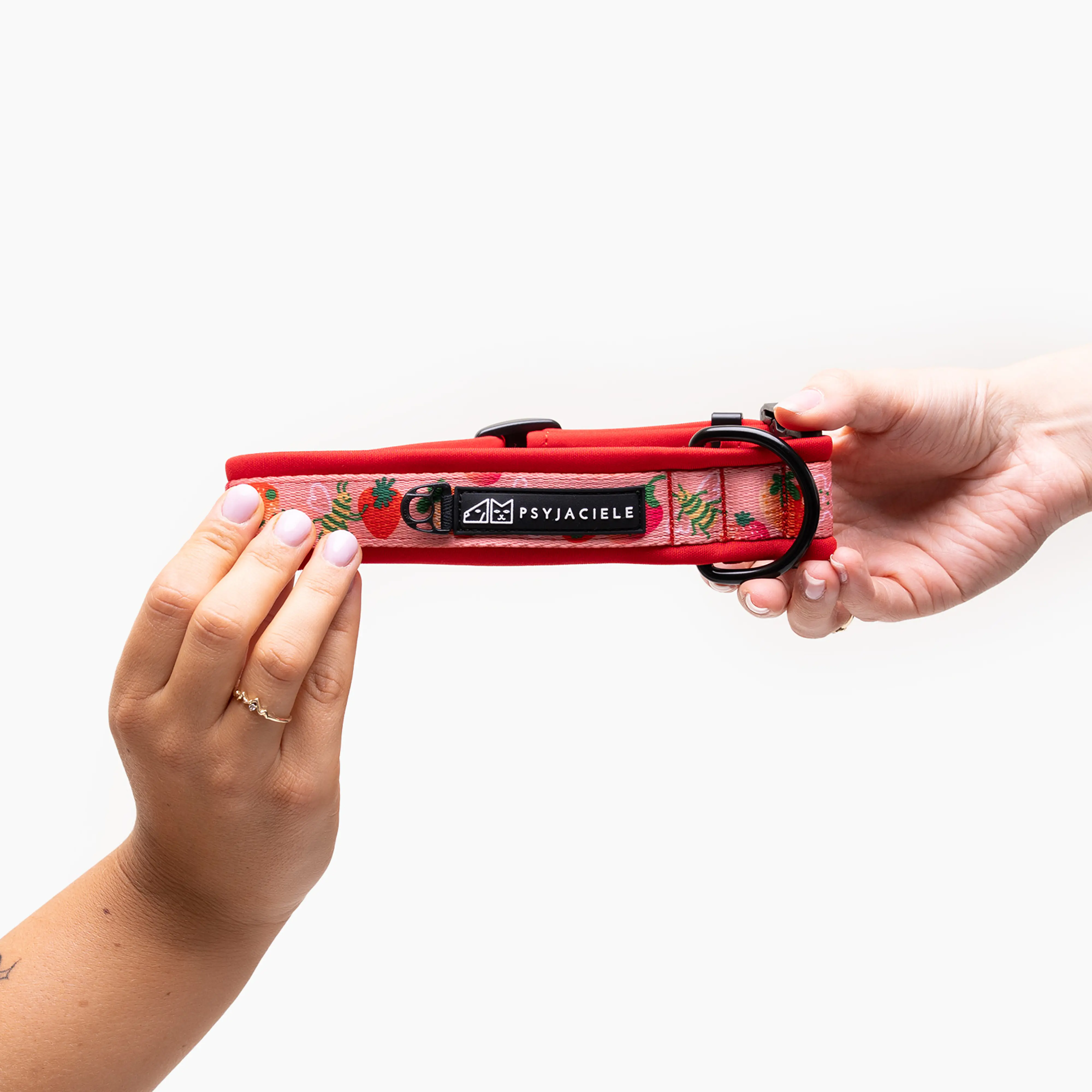 Nasza obroża SUPER SOFT to piękna kolorowa taśma ze wzorem podszyta dwuwarstwową, bardzo miękką pianką i wytrzymałe, czarne, matowe okucia. Idealnie sprawdzi się u psów bez podszerstka, z bardzo krótką sierścią i super wrażliwych.