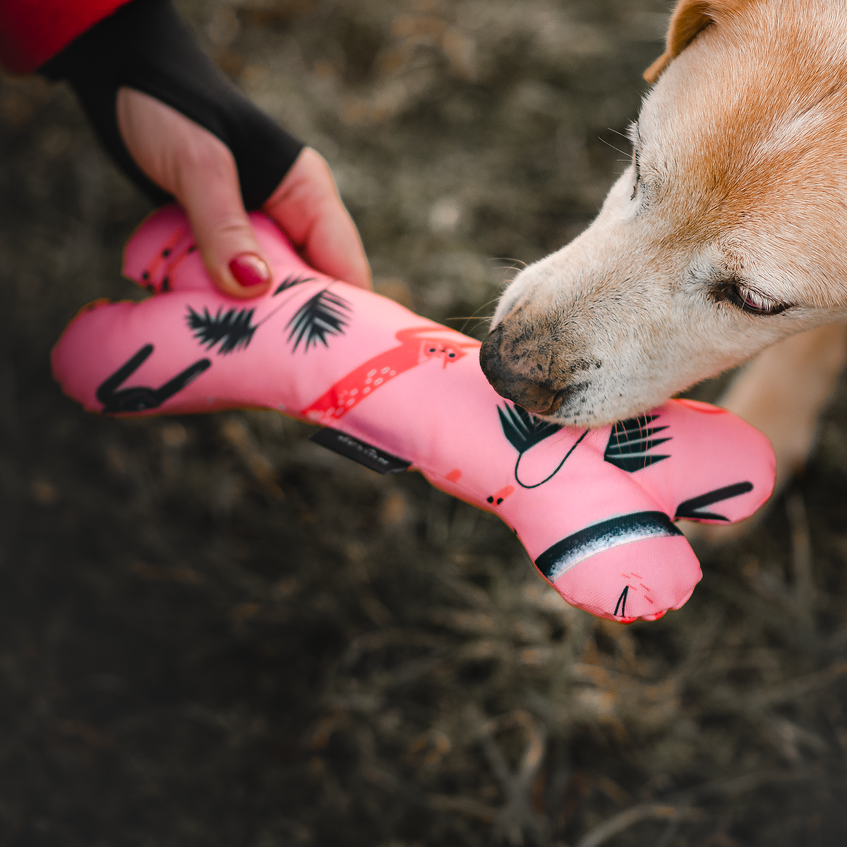 Our bone-shaped toy will please every pooch. The bone is sewn from strong, waterproof material; inside it was filled with soft ovate. An interesting pattern designed by the wonderful illustrator Joanna Gębal will make every pet happy with such a gift.
