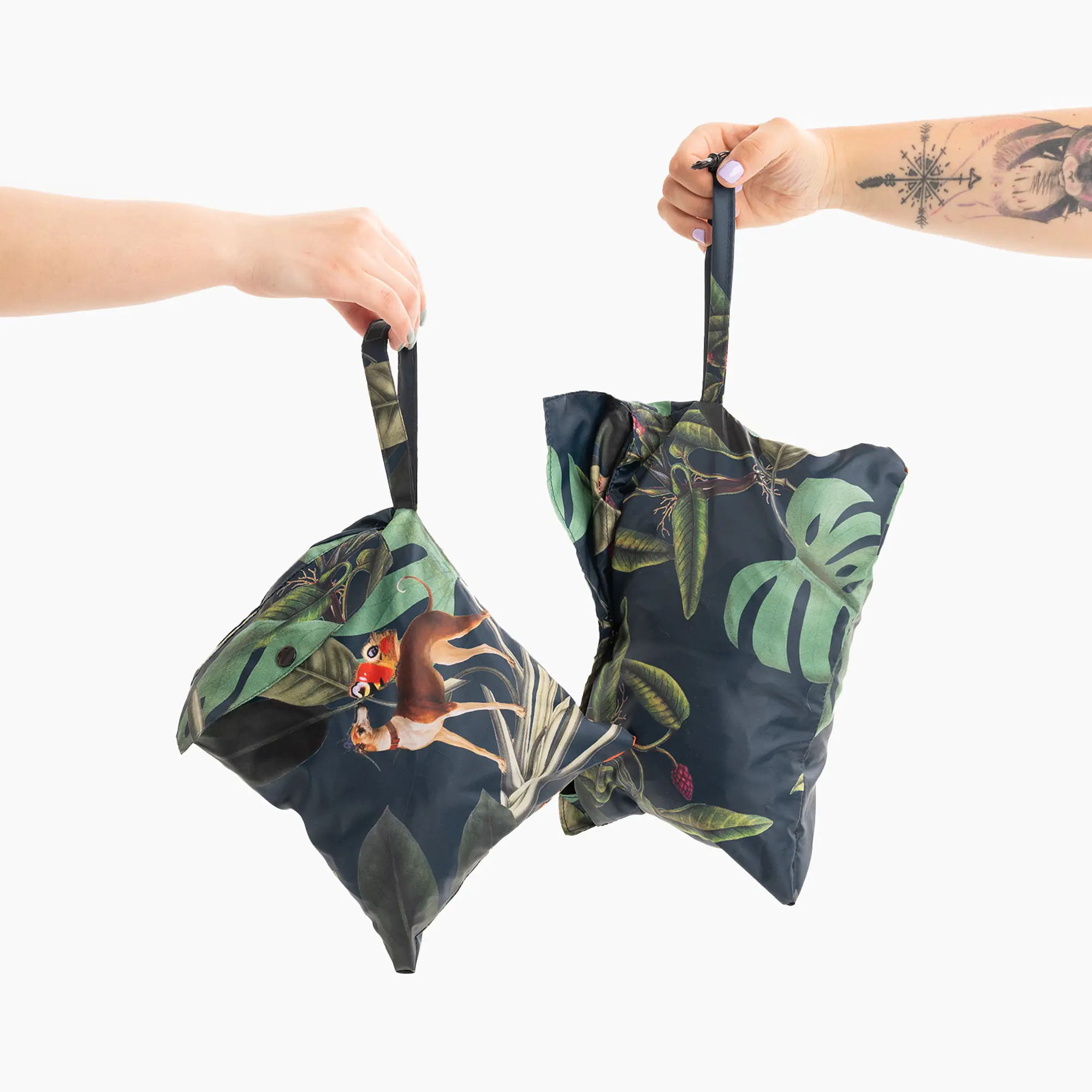 Płaszcz można schować do wszytej kieszonki zamieniając go w małą saszetkę, którą za pomocą karabinbka można przypiąć nawet do smyczy.