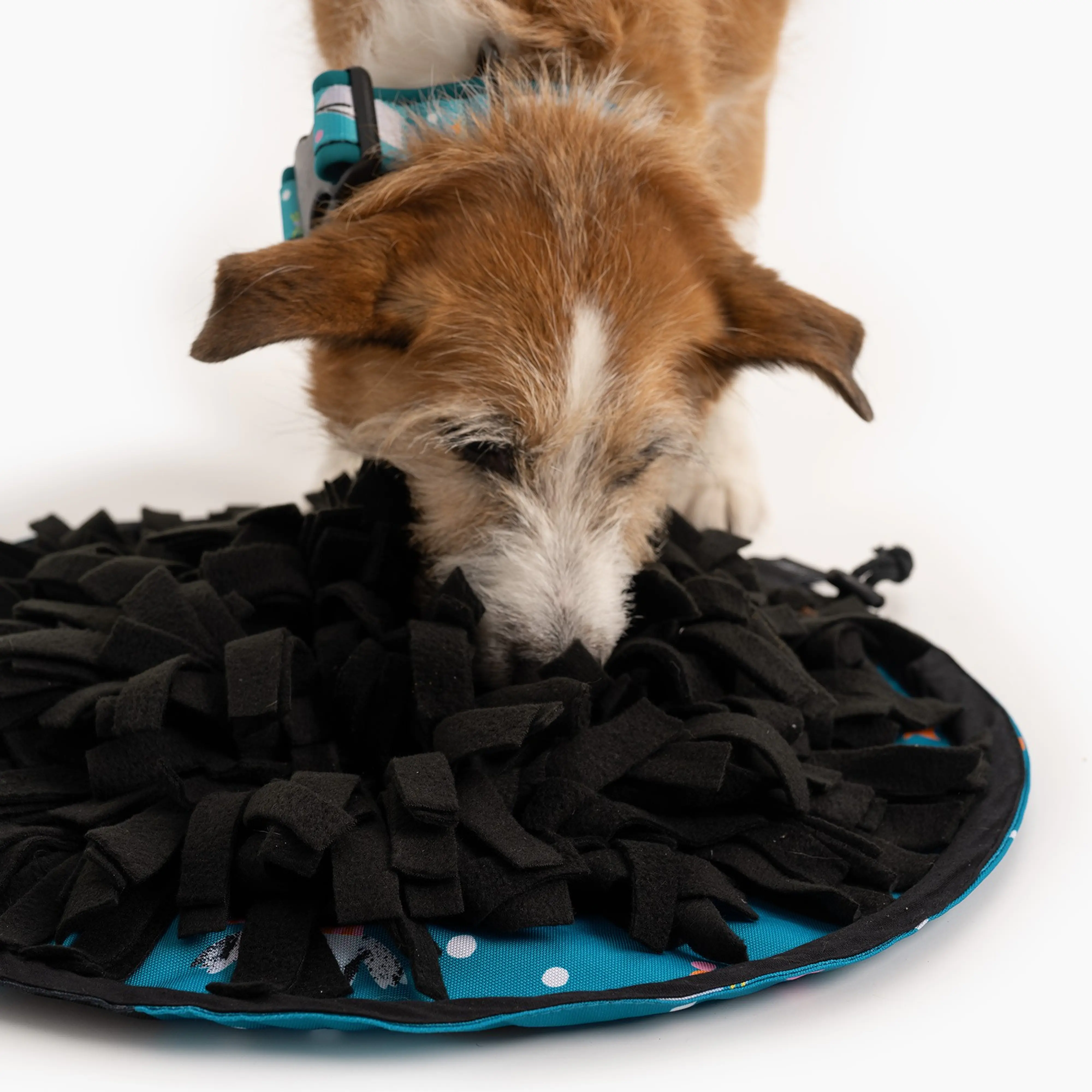 Nasza mata węchowa to świetna zabawka dla Twojego psiaka. Gęsty polar pozwala ukryć dużą ilość smaczków, antypoślizgowe dno wzmacnia stabilność, a pomysłowy ściągacz po dwóch stronach pozwala zwiększać lub zmniejszać poziom trudności.To świetna zabawa dla Twojego psa, która pozwoli na długo zająć zwierzaka i nawet lekko zmęczyć :)