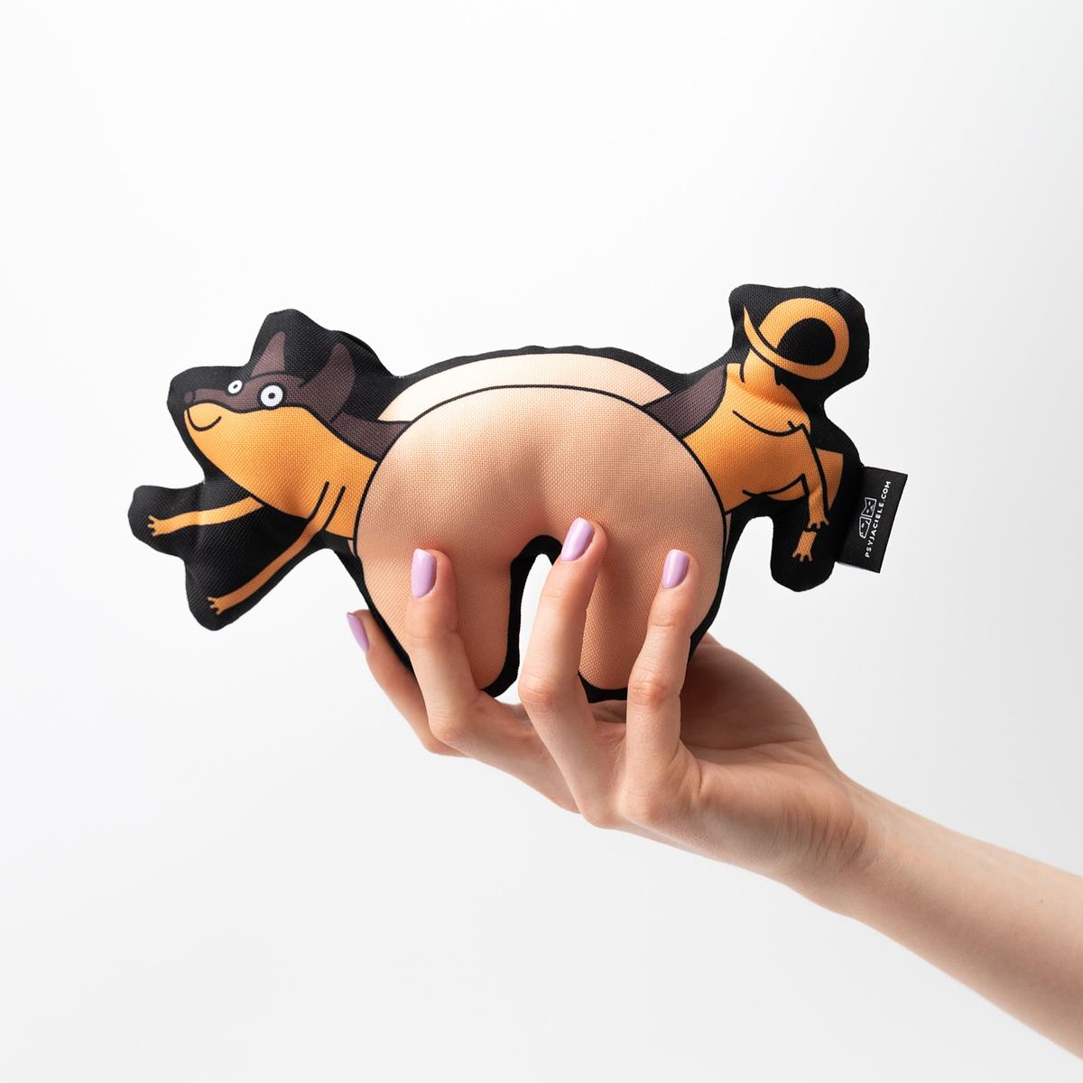 Our fortune cookie-shaped toy will please every pooch. The toy is sewn from strong, waterproof material; inside it was filled with soft ovate. An interesting pattern designed by the wonderful Adela Madej will make every pet happy with such a gift.