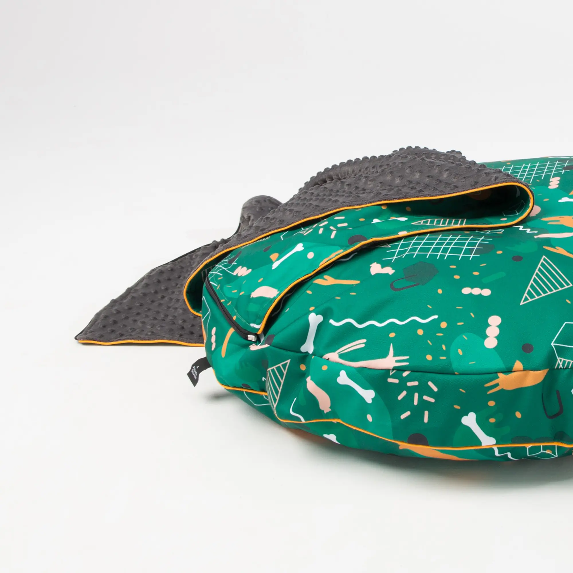 Dog or cat bed in the shape of a comfortable, round pillow with hood is a high-quality workmanship combined with a designer pattern and the highest comfort for your pet. The pattern designed by the wonderful illustrator Pola Augustynowicz will fit beautifully into the interior of your home.