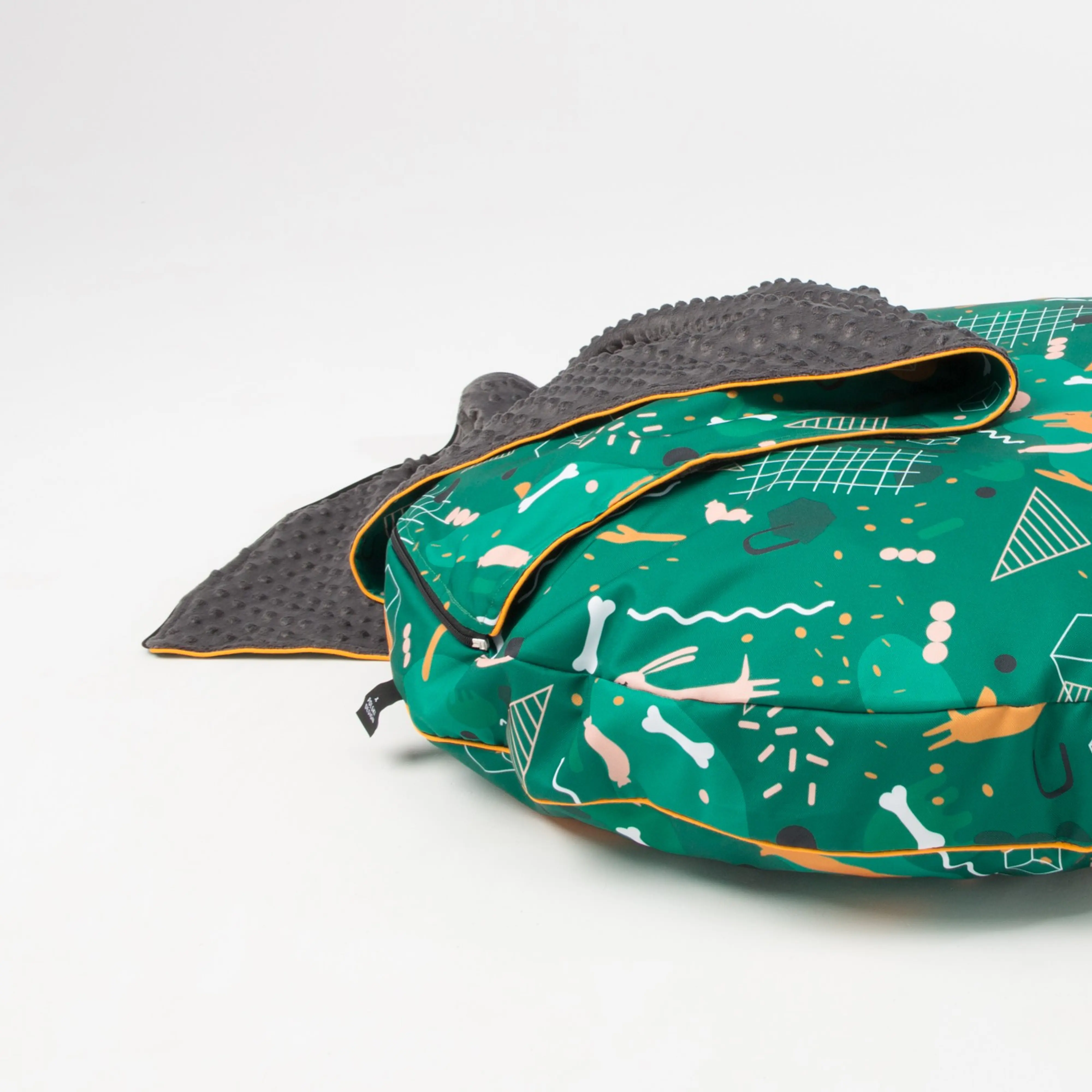 The cushion was made in Poland, from the highest quality Polish materials guaranteeing long and comfortable use. The shape of the bed provides great comfort for the dog - the contoured inner cushion provides the highest comfort during rest, while playing or cutting in the teethers. Thanks to additional cap, every dog freezing cold feels fantastic - the interior is made of warm fleece that provides the dog with a cozy nest. The mounted zip allows us to fully pull off the hood and use it like a regular blanket. The handle adds charm, which is great moving.