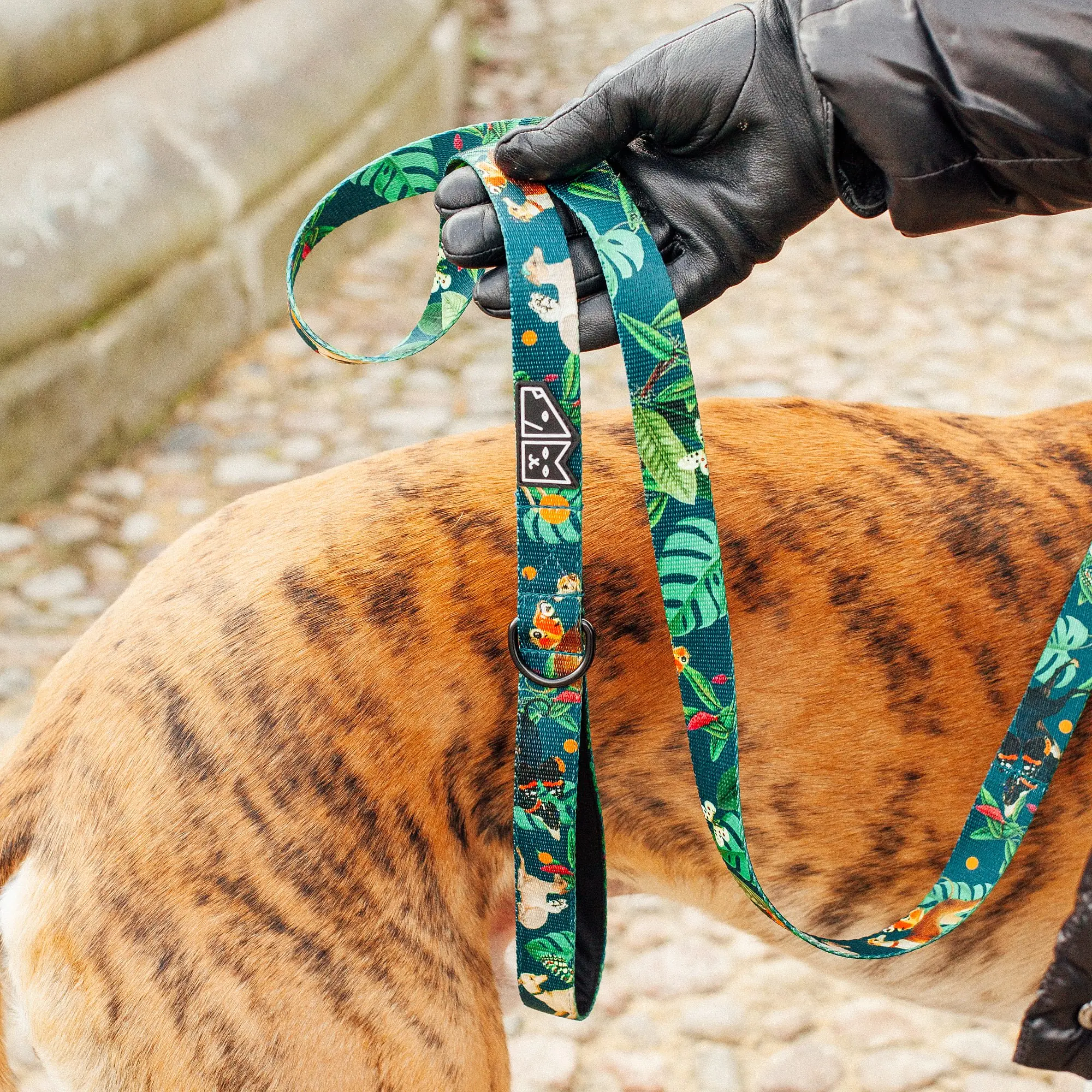 Świetny, unikalny design smyczy sprawi, iż Twój psiak będzie wyglądał jak prawdziwy model :). Smycz miejska to must have dla każdego psiaka. Nasza smycz jest wersją premium - rączka podszyta jest miękką pianką dopasowaną kolorystycznie do wzoru, przy rączce dodaliśmy D ring pozwalający na przypięcie kupoworka, a na dole smyczy wmontowaliśmy dodatkową rączkę przydatną np. przy przechodzeniu przez ulicę. Smycz została uszyta ręcznie z bardzo wytrzymałej dwustronnej taśmy o szerokości 20mm lub 25mm. Czarne, mocne, matowe okucia marki Duraflex i super wytrzymały karabinek gwarantują długotrwałe użytkowanie. Do wyboru 2 wielkości karabinków mniejszy (lżejszy) oraz większy (cięższy) pozwalający dobrać smycz do wagi psa.