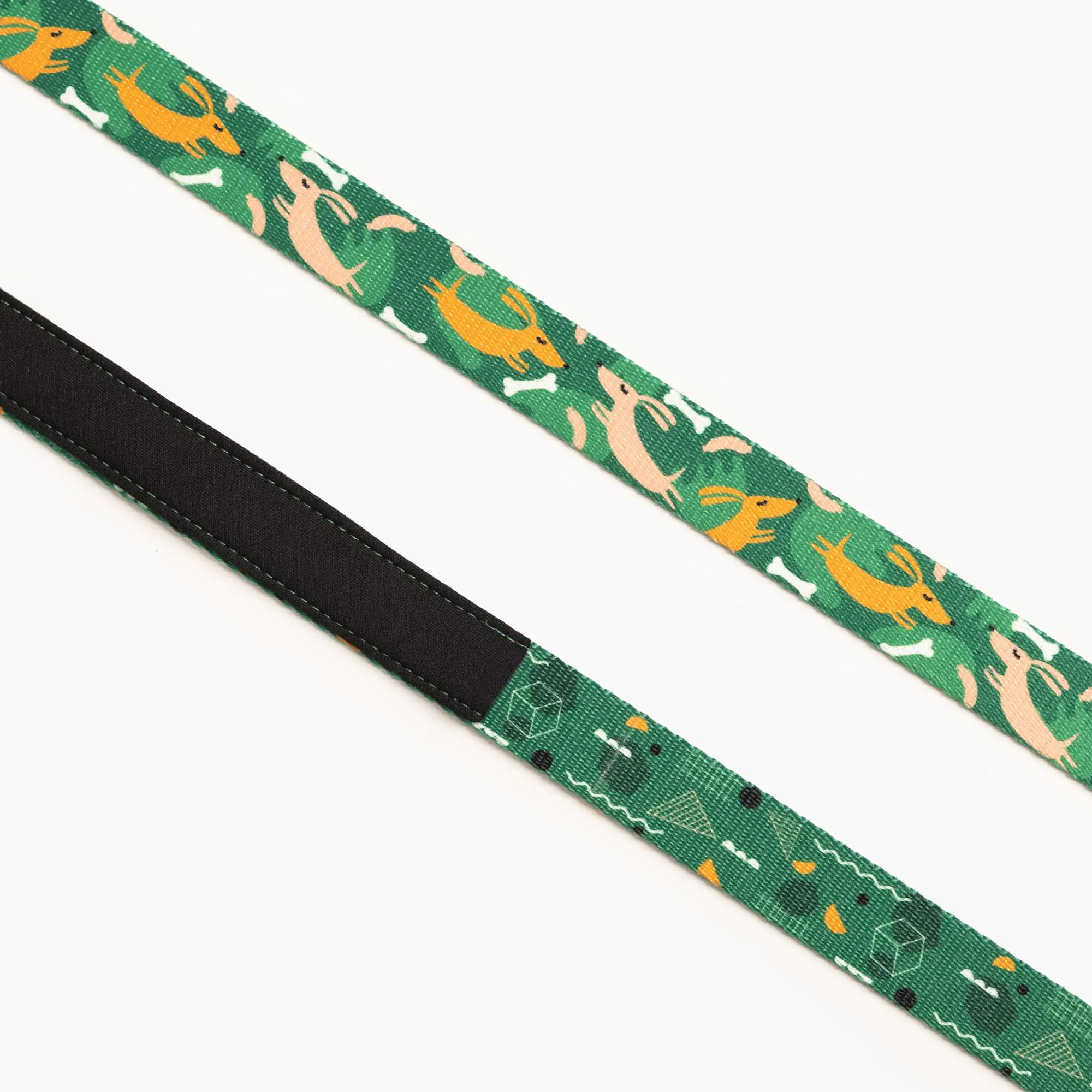 Wzór Psy na jawie to świetnie znane Wam marzenia senne psiaków przeniesione na smycze, szelki i obroże. Piękny, butelkowo zielony kolor pasuje zarówno dla psów jak i suczek, a zabawne pieski, kiełbaski i patyki sprawiają, że jest jedyny w swoim rodzaju i niepowtarzalny. Wyraziste kolory przepięknie skomponują się z sierścią Twojego psiaka! Ubierz swojego psiaka w designerski wzór, a każdy spacer będzie super psyjemny. Wzór zaprojektowany przez wspaniałą ilustratorkę Polę Augustynowicz.