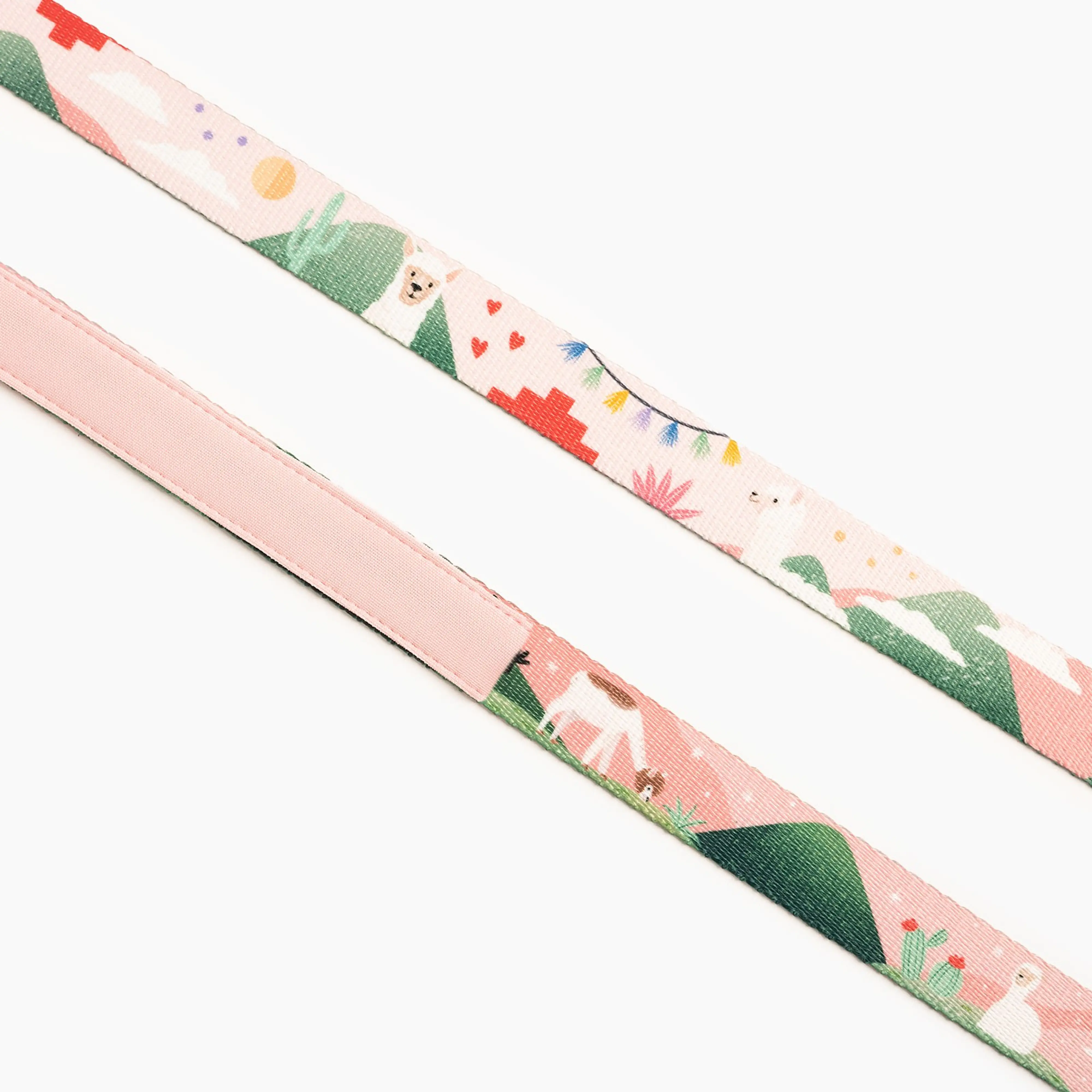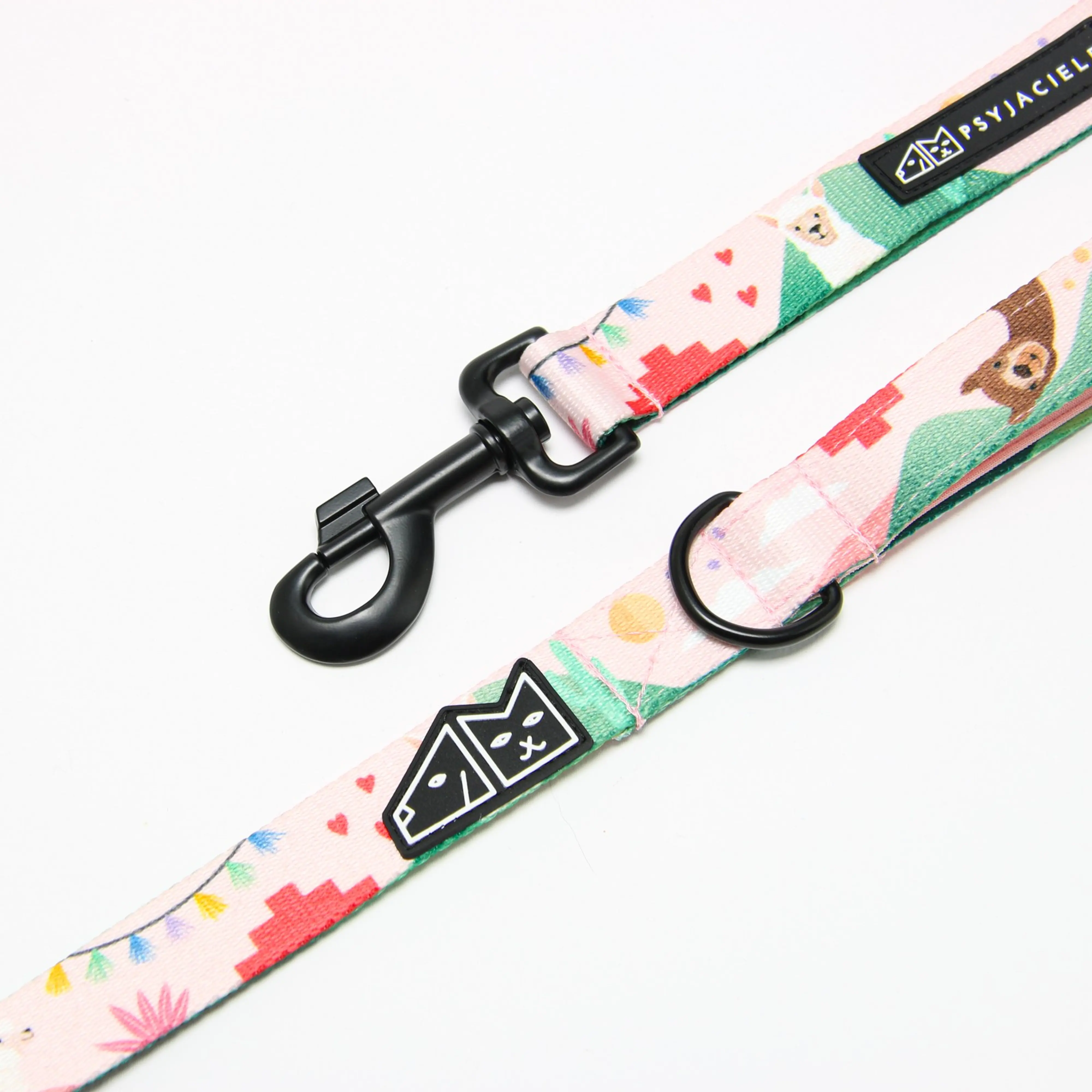 Wzór "Więcej niż jedno zwierzę", dzięki swojemu bajkowemu klimatowi spodoba się nie tylko fanom Familiady :). Cudne lamy, delikatny, miłosny, różowy odcień i butelkowa zieleń uzupełniają się tworząc wyjątkową całość. Twój psiak będzie błyszczał na każdym spacerze.