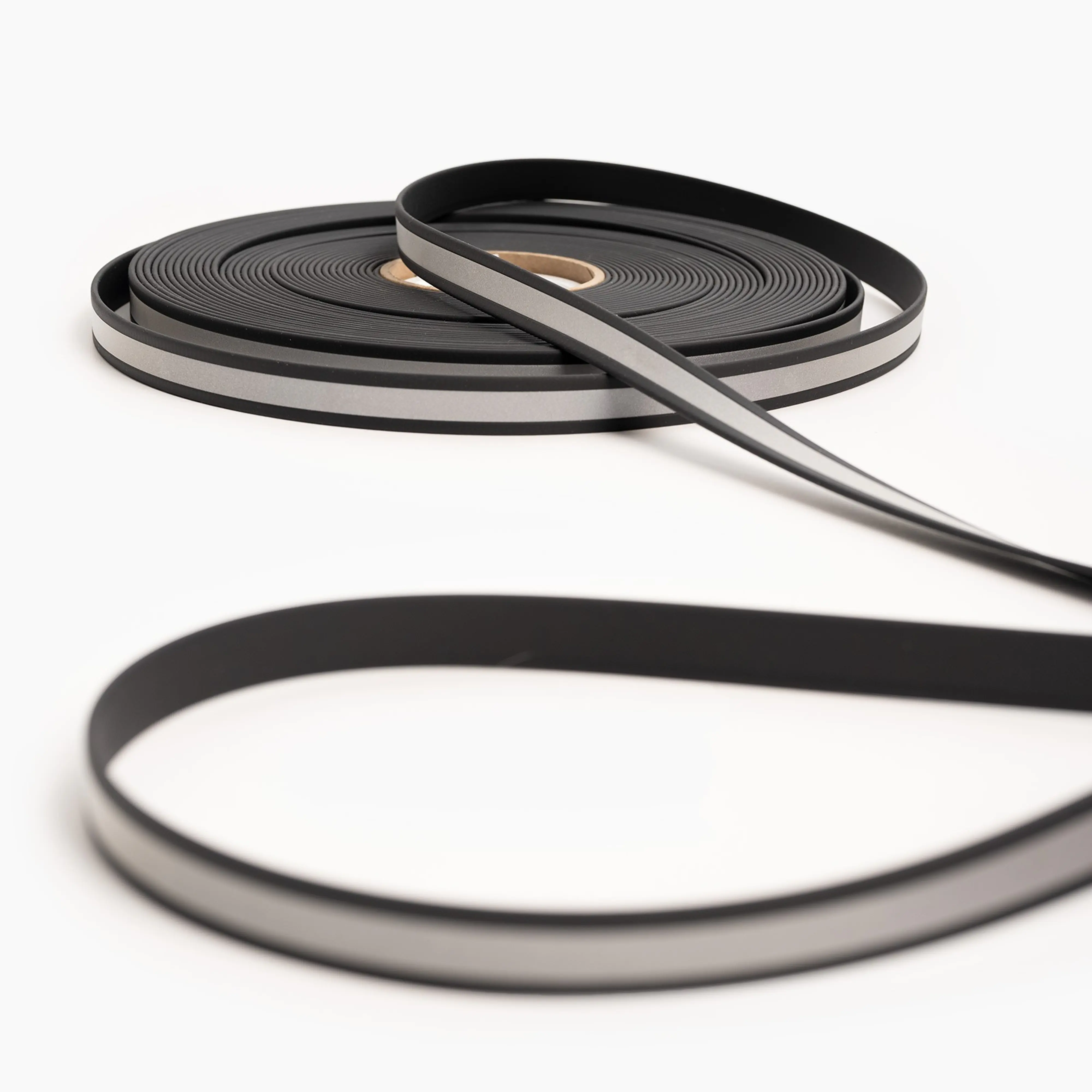 Odblask w smyczy możemy dodać tylko na taśmę szerokości 19mm. Odblask jest dodawany tylko na końcu smyczy i na przepięciach i jest to kawałek CZARNEJ taśmy z odblaskowym paskiem na środku.